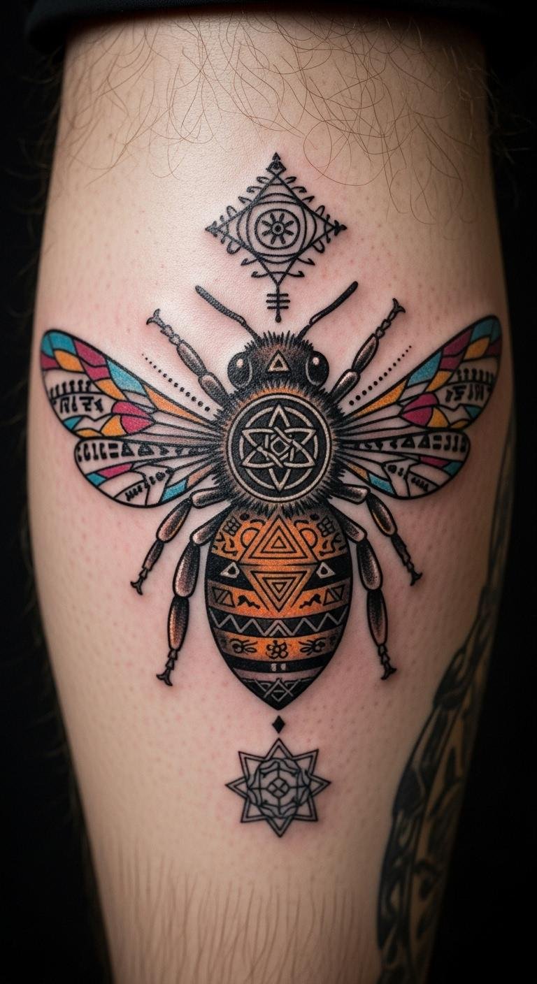 Geometric Bee Tattoo