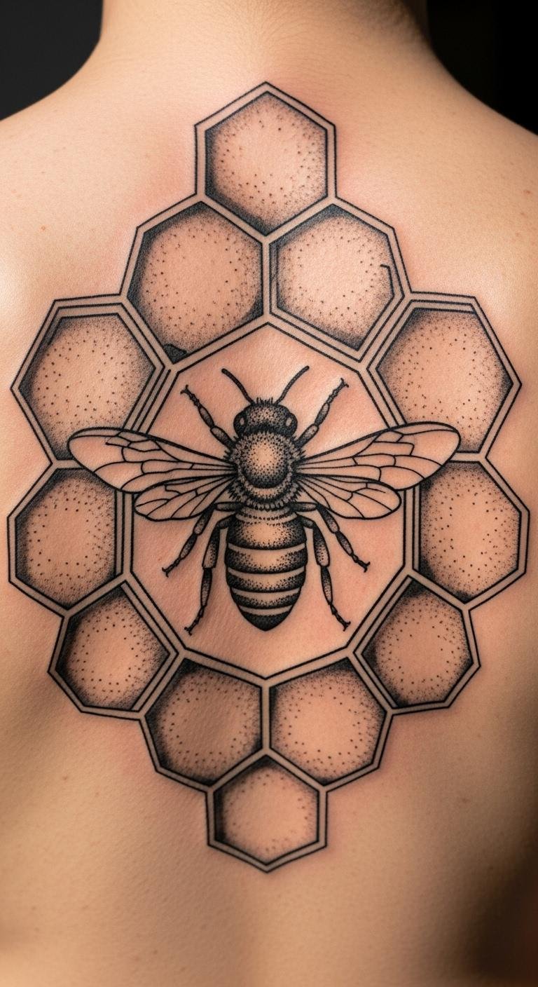 Honeycomb Pattern Bee Tattoo