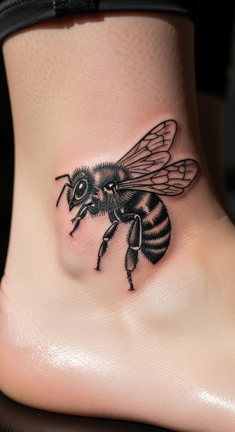 Ankle Bee Tattoo