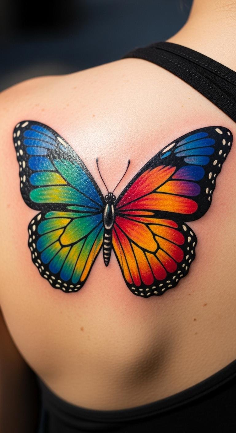 Butterfly on the shoulder blade signifies change. Pick inks for bright, lasting wings. Collect butterfly images online. Book for $120. Draw butterflies on fabric. Use gentle fabrics for healing. This tattoo transforms your outlook and confidence. Experiment with wing shapes. Basic care products help.