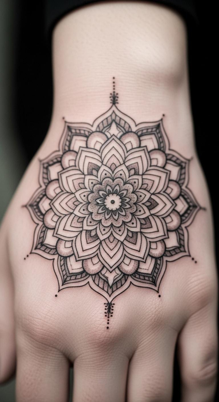 Mandala on the hand symbolizes peace and focus. Select inks that maintain complex patterns. Draw mandalas on paper to decide. Book for $70 at a budget studio. Use compasses for accurate home designs. Let it heal in the open air. This design centers your mind and boosts assurance. Customize with colors you like. Inexpensive oils keep it healthy.
