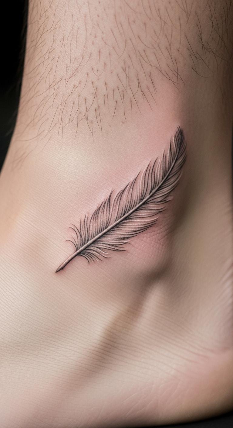Feathers symbolize freedom. Fine lines enhance it. Choose your ankle for a light feel. Draw feathers on paper to start. Experiment with shapes online. Cost: Keep it tiny for less money, around $45. This design peeks out casually. Make it your own. Ink it and feel free.