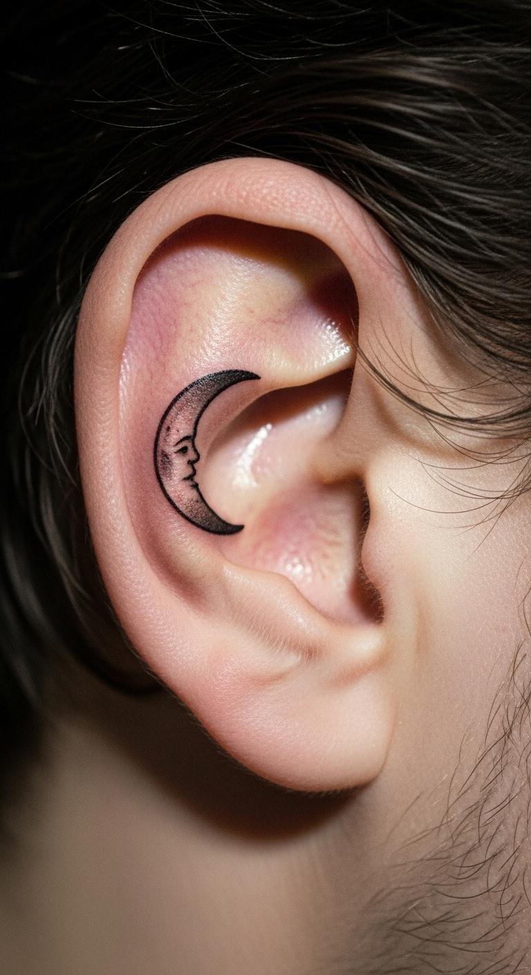 A moon represents cycles. Place it behind your ear for secrecy. Sketch moons at home simply. Use free tools for phases. Budget tip: Ear tattoos are quick and cheap, under $40. Hide it for work. Moons add mystery. Get one and track your phases.