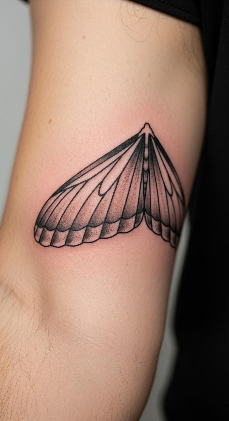 A moth wing means transformation. Use it on your arm. Draw wings at home. Personalize with details. Affordable: Wing designs are value options, about $55. This symbol evolves with you. Moths inspire change. Ink it and transform.