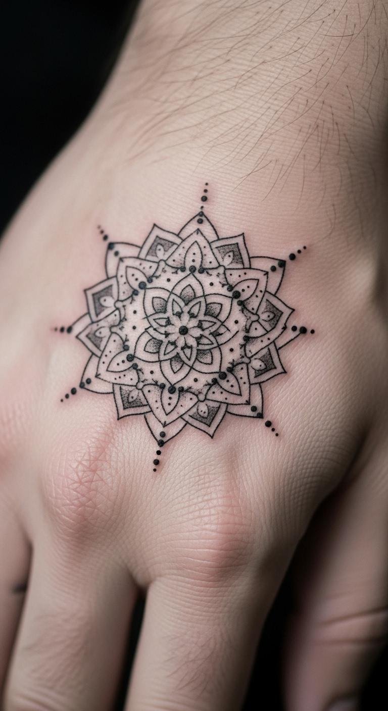A mandala brings harmony. Place it on your hand. Sketch mandalas simply. Use templates online. Budget: Hand tattoos are quick, under $60. This design centers your focus. Mandalas balance style. Get one and harmonize.