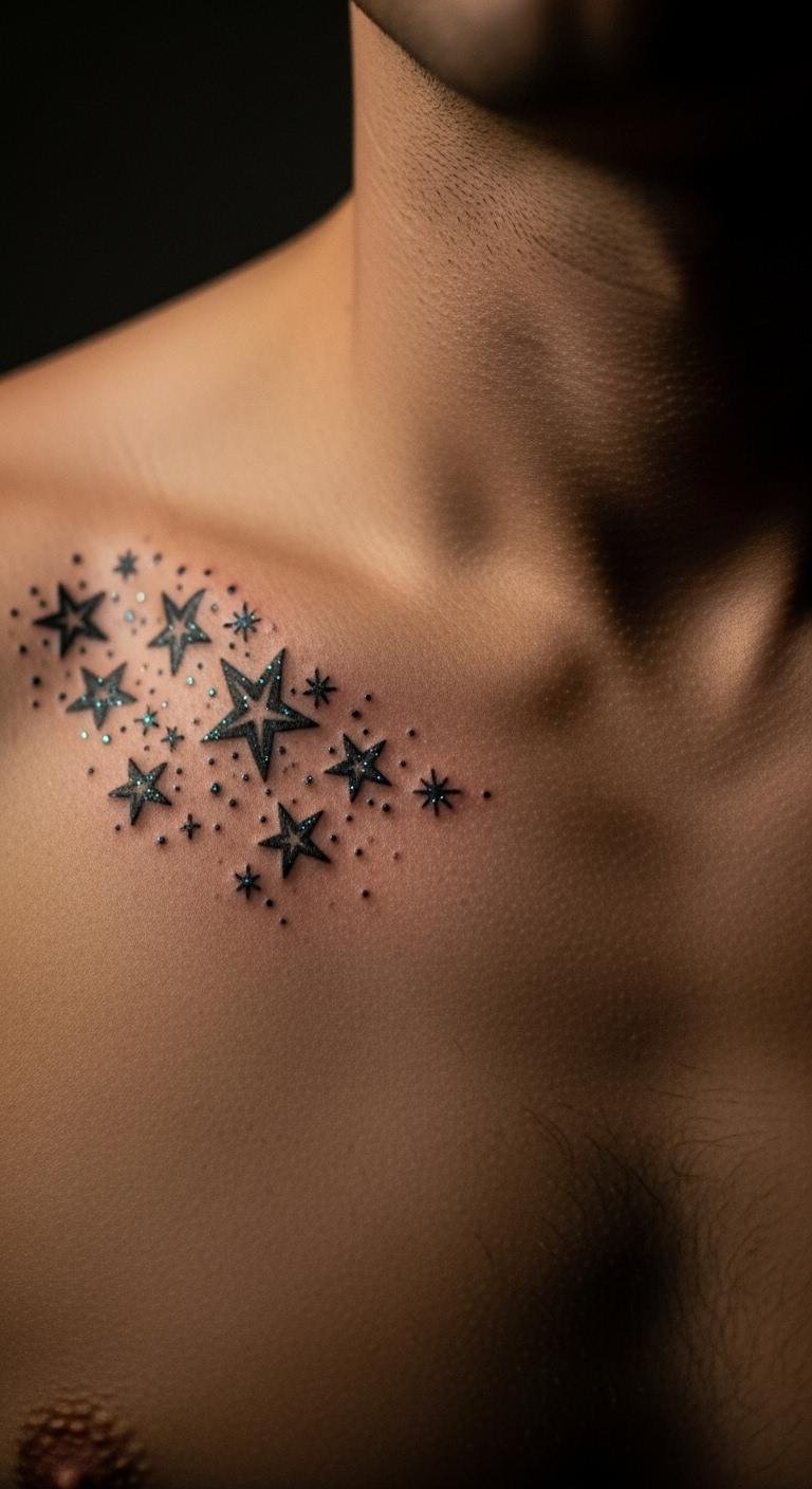 Stars represent guidance and dreams. Choose a cluster for a galactic look. Put it on your inner forearm for easy access. Draw stars with a pen on paper to experiment. Free apps let you arrange them creatively. Save money: Look for flash deals at local shops, often under $80. This placement hides under shirts. Stars add a cosmic twist to your style. Go small to keep it bold yet understated. Ink one and let it shine in different lights.