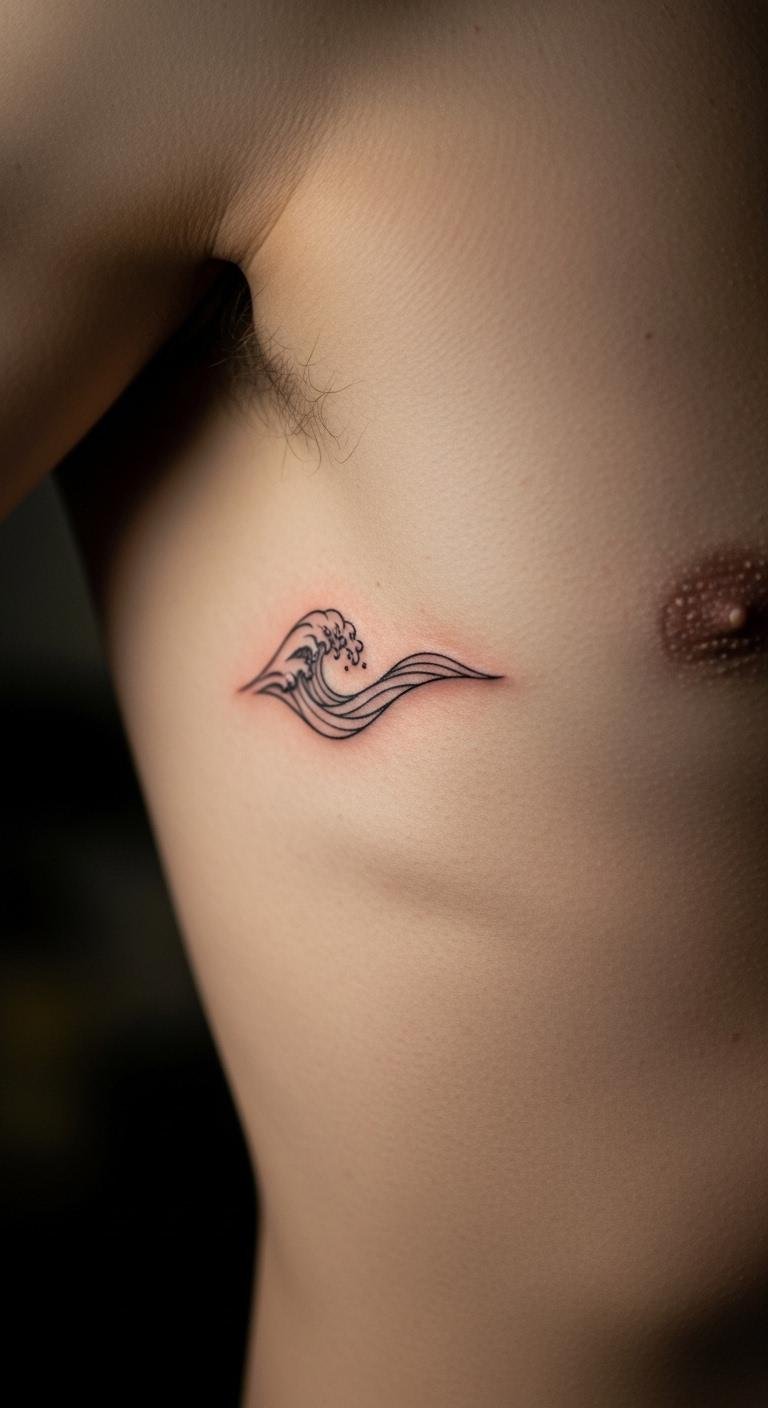 Waves show flow and change. Abstract versions add flair. Put it on your ribs for a personal spot. Sketch waves freehand at home. Experiment with curves using drawing tools. Save: Opt for single-session artists, under $90. This placement stays covered. Waves enhance your style effortlessly. Go bold with curves. Get one and see how it flows with your look.