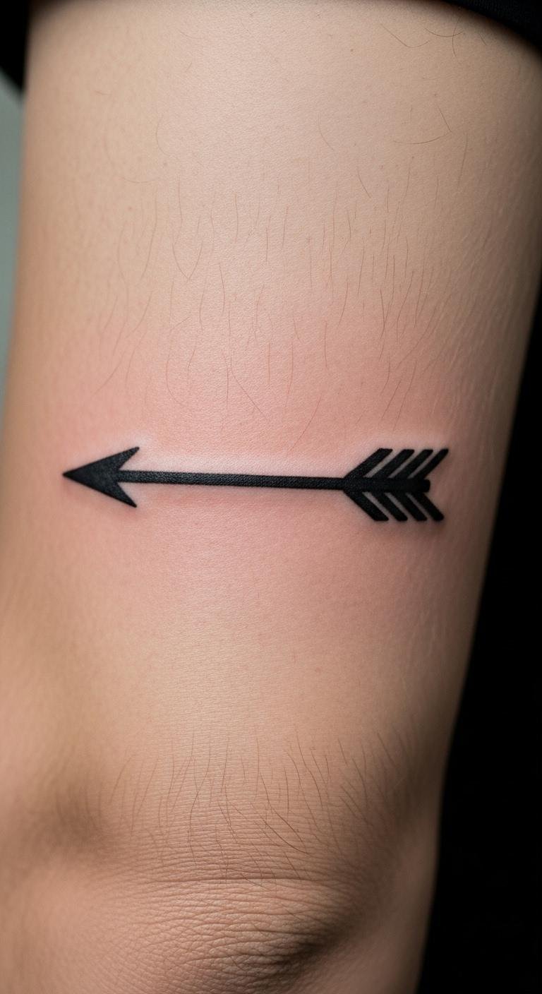 An arrow points to direction. Blackwork adds solidity. Place it on your forearm for motivation. Draw arrows quickly on paper. Customize with straight lines. Affordable: Black ink keeps costs down, under $60. This design motivates in tough times. Go bold with the fill. Ink it and move forward.