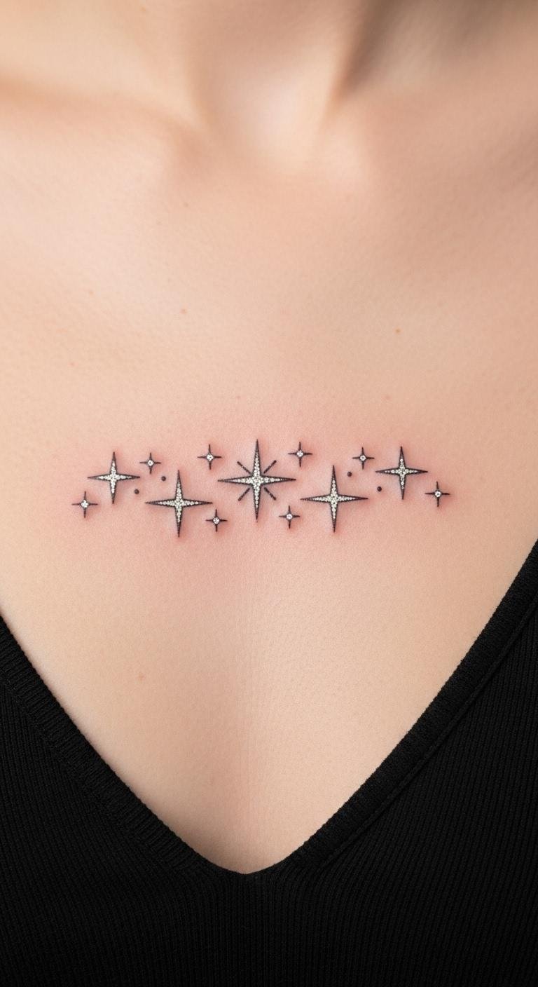 Dainty stars sparkle with simplicity. A few dots create a constellation. They suit the space. Draw stars at home with ease. Free stencils online help. This keeps costs down. Get input from an artist. They can space them right. Use minimal ink. Arrange in a line. Conceal with everyday wear. Show for nights out. Stars mean guidance. Select your arrangement. It’s a light-hearted choice.