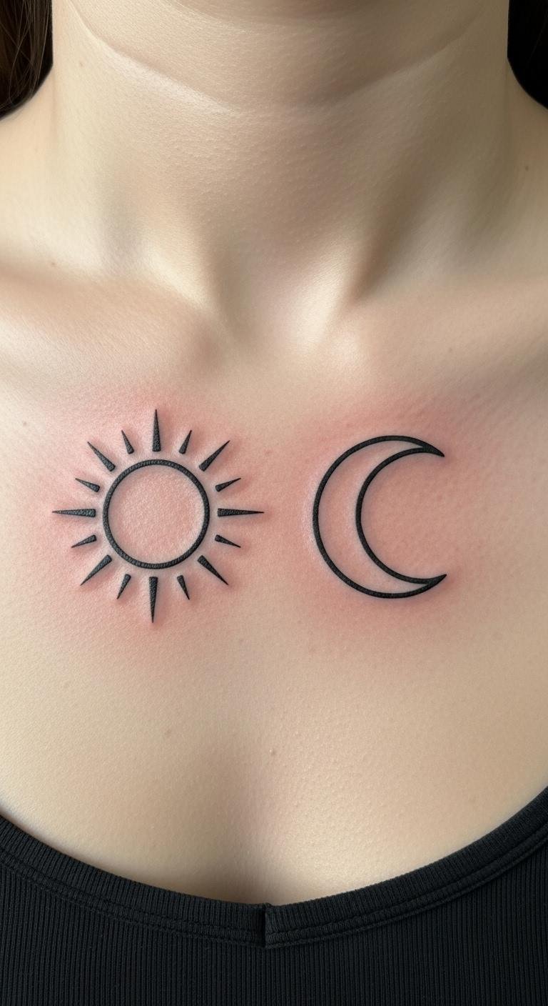 Sun and moon combos balance opposites. Symbols fit the area well. Day and night themes. Draw them on paper. Online ideas are free. This helps decide. Ask an artist for pairing. They ensure harmony. Opt for black and white. Align vertically. Hide under shirts. Reveal at events. They stand for duality. Choose what fits. It’s a thoughtful selection.