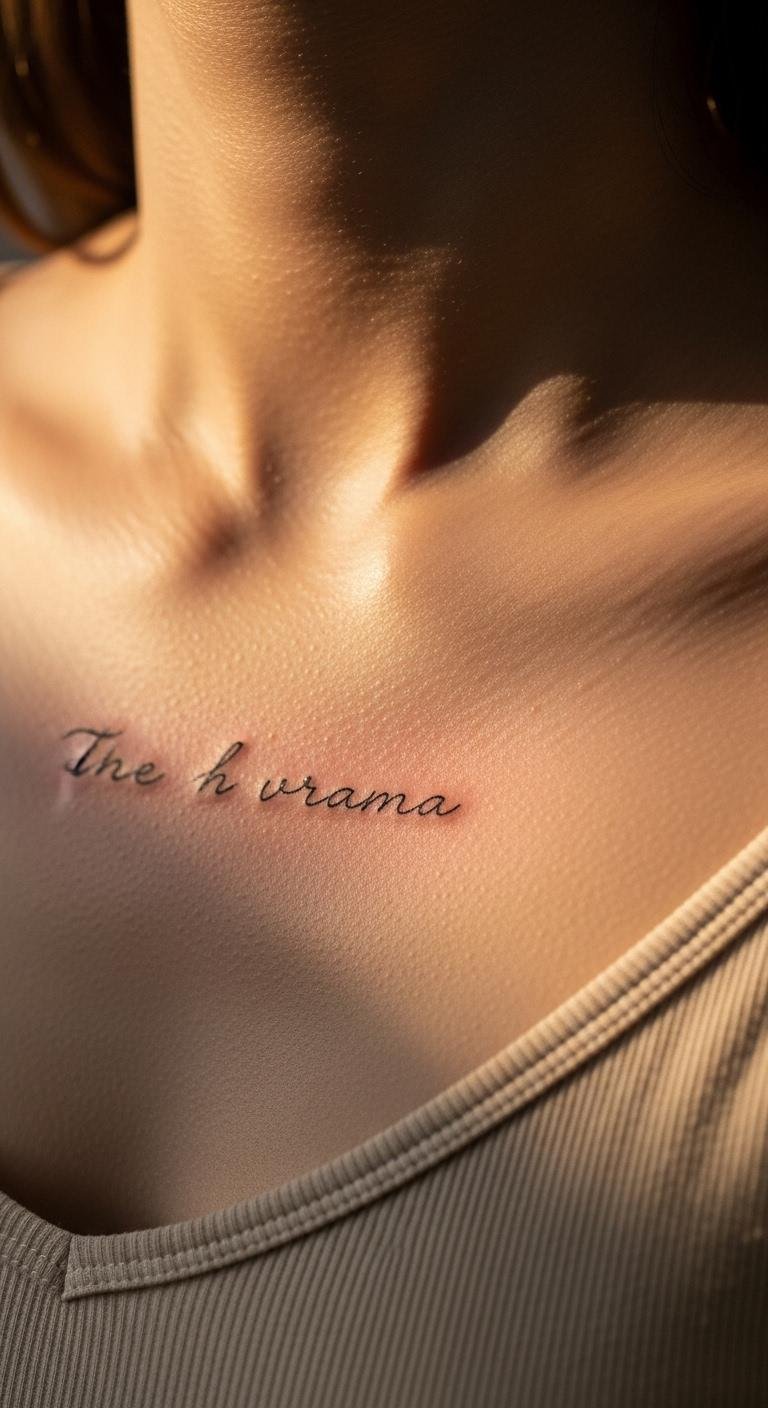 Minimalist script tattoos keep it simple. A word or phrase fits perfectly here. It’s great for first-timers. Write ideas on paper to start. Download free fonts online for inspiration. This lets you practice without any cost. Consult a nearby artist for fine details. They can use light techniques to reduce discomfort. Choose thin lines in black ink. Place it straight down the middle. Hide under a blouse for work. Reveal with a deep neckline for fun. Script can mean personal mottos or names. Pick something meaningful. It’s a straightforward choice for everyday wear.