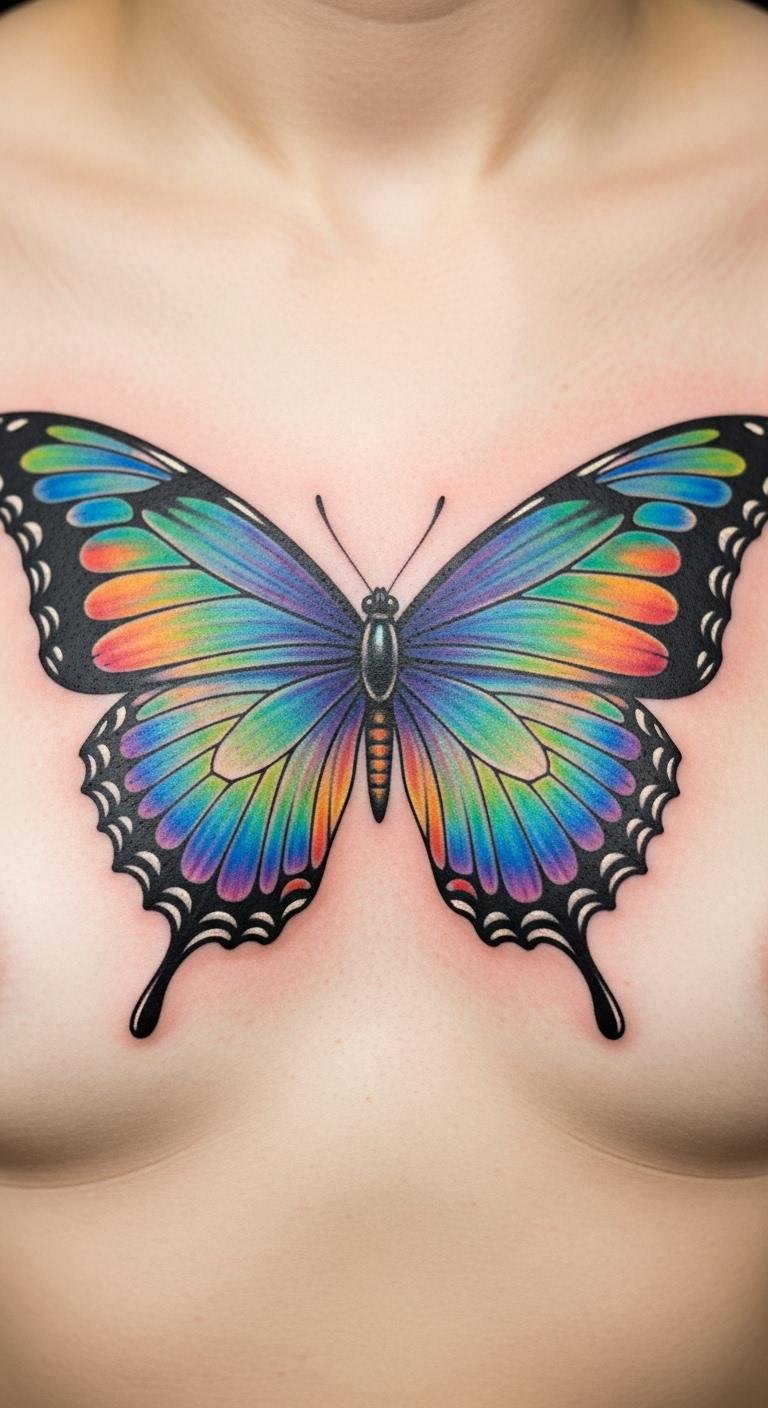 A colorful butterfly tattoo brings energy. Wings can span the space creatively. It pops with hues. Sketch butterflies on paper first. Online resources offer free designs. This helps you visualize cheaply. Consult an artist for color options. They might test shades quickly. Choose a small version to manage expenses. Curve it with your body’s lines. Cover for work with ease. Show at gatherings with the right outfit. Butterflies mean transformation. Go with one that inspires you. It’s a fun way to stand out.