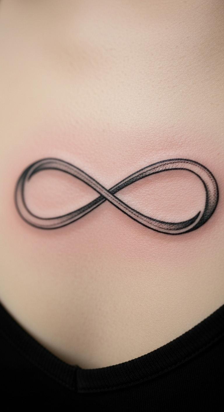 An infinity symbol is endlessly versatile. The loop fits the narrow area. It looks elegant. Draw loops on yourself to test. Free tools online aid in design. This saves on initial costs. Ask an artist for tips. They can ensure it’s straight. Use basic black for affordability. Align it vertically. Hide under clothes as needed. Reveal for meaningful moments. Infinity often means forever. Choose based on your experiences. It’s a simple yet powerful option.
