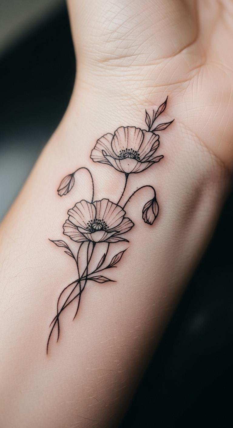 Minimalist Poppy on Forearm