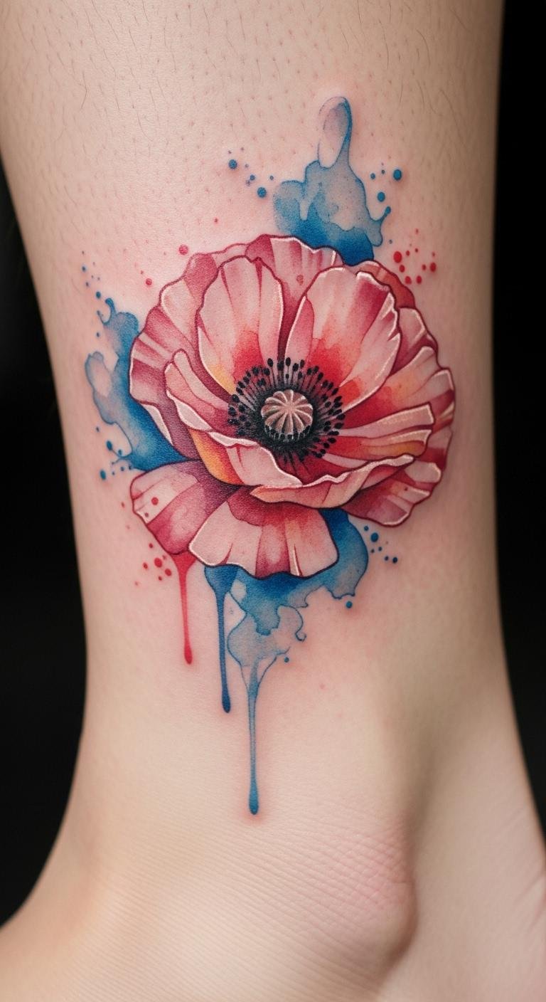 Watercolor poppies on your ankle flow easy. Imagine blended pinks fading into skin. This adds a playful note. Paint on canvas at home. Buy supplies for $10. Practice blends quickly. Place low for daily wear.