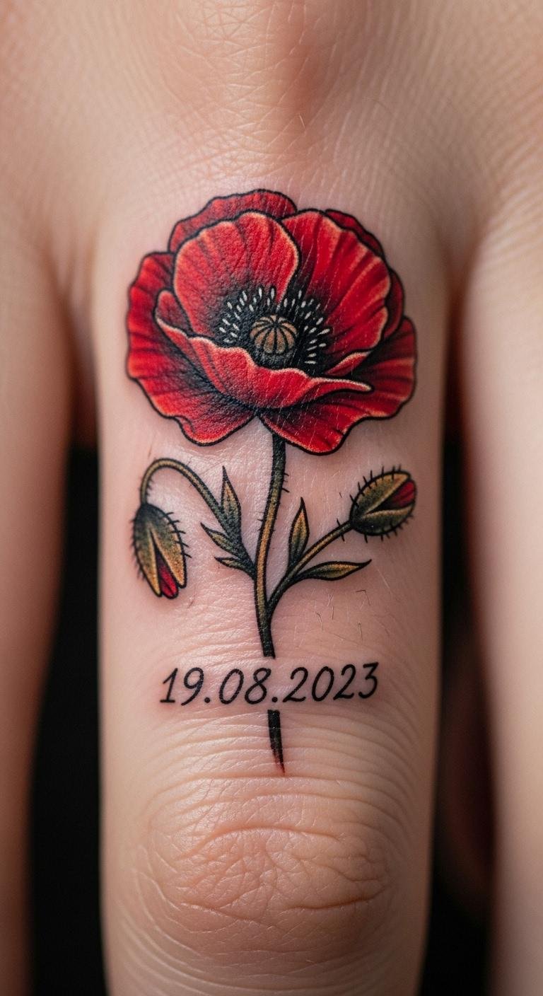 Vibrant Poppy Remembrance Tattoo