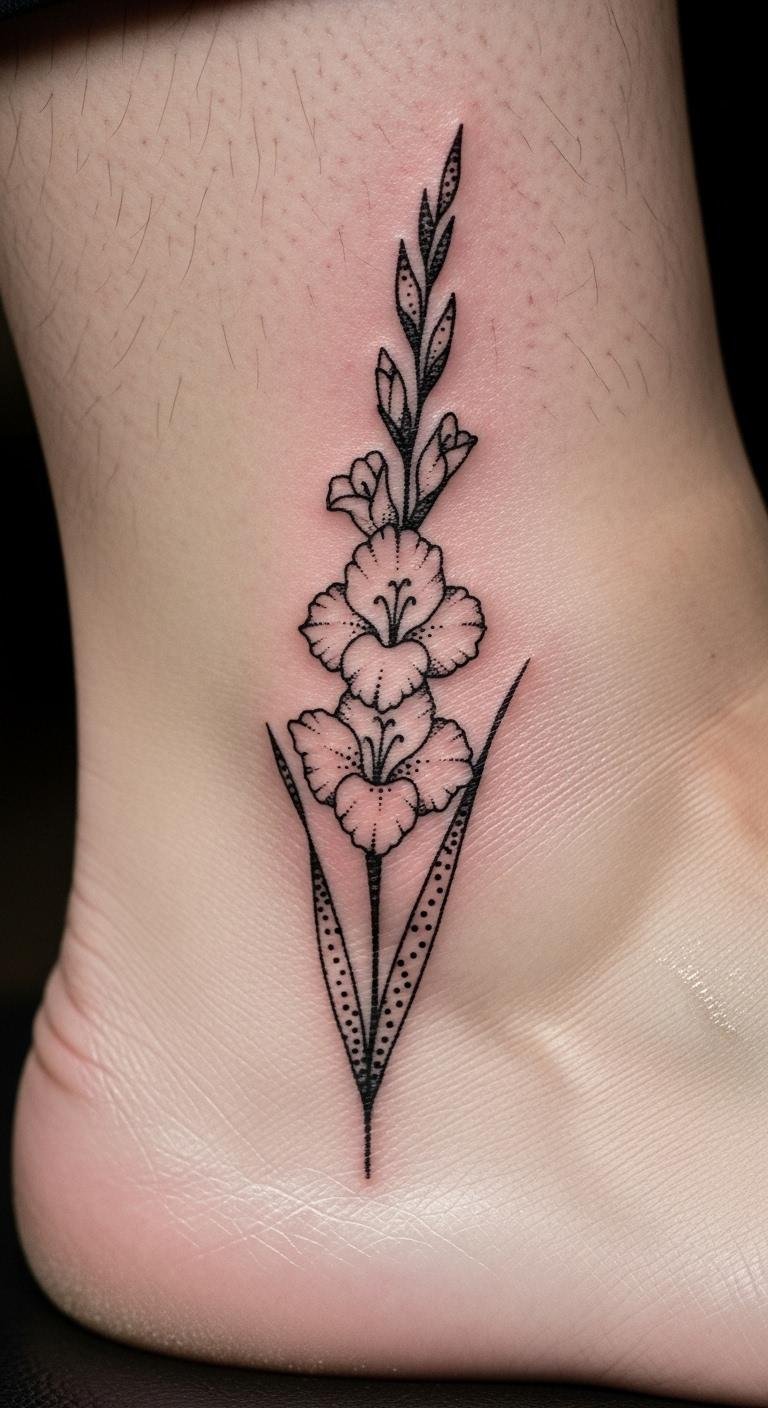 A dot gladiolus on your ankle is tiny. Picture small dots forming a shape. This fits quick choices. Dot paper with a pen. Easy and free. Costs just $30. Wear with confidence.