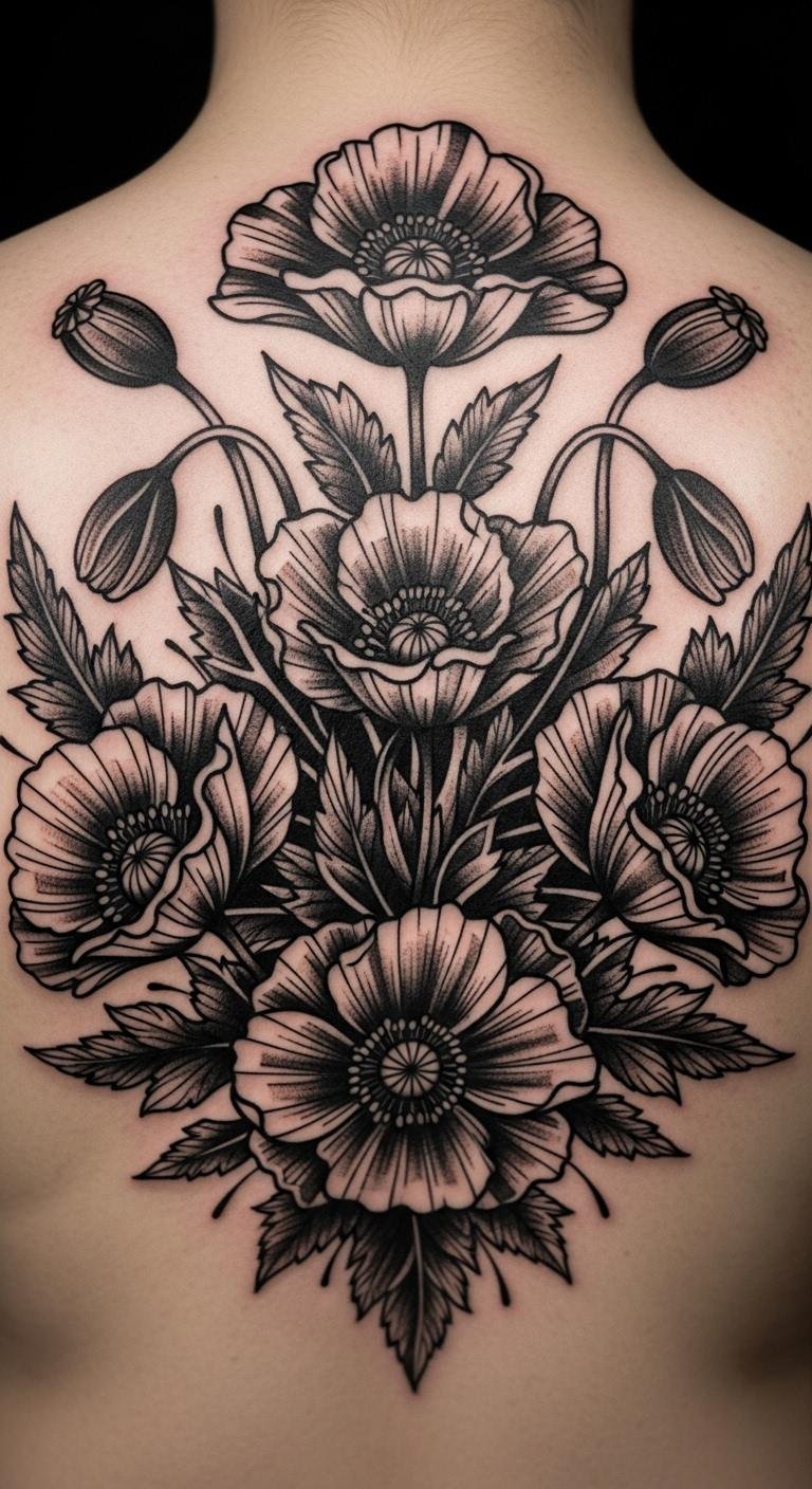 Blackwork Poppy Cluster