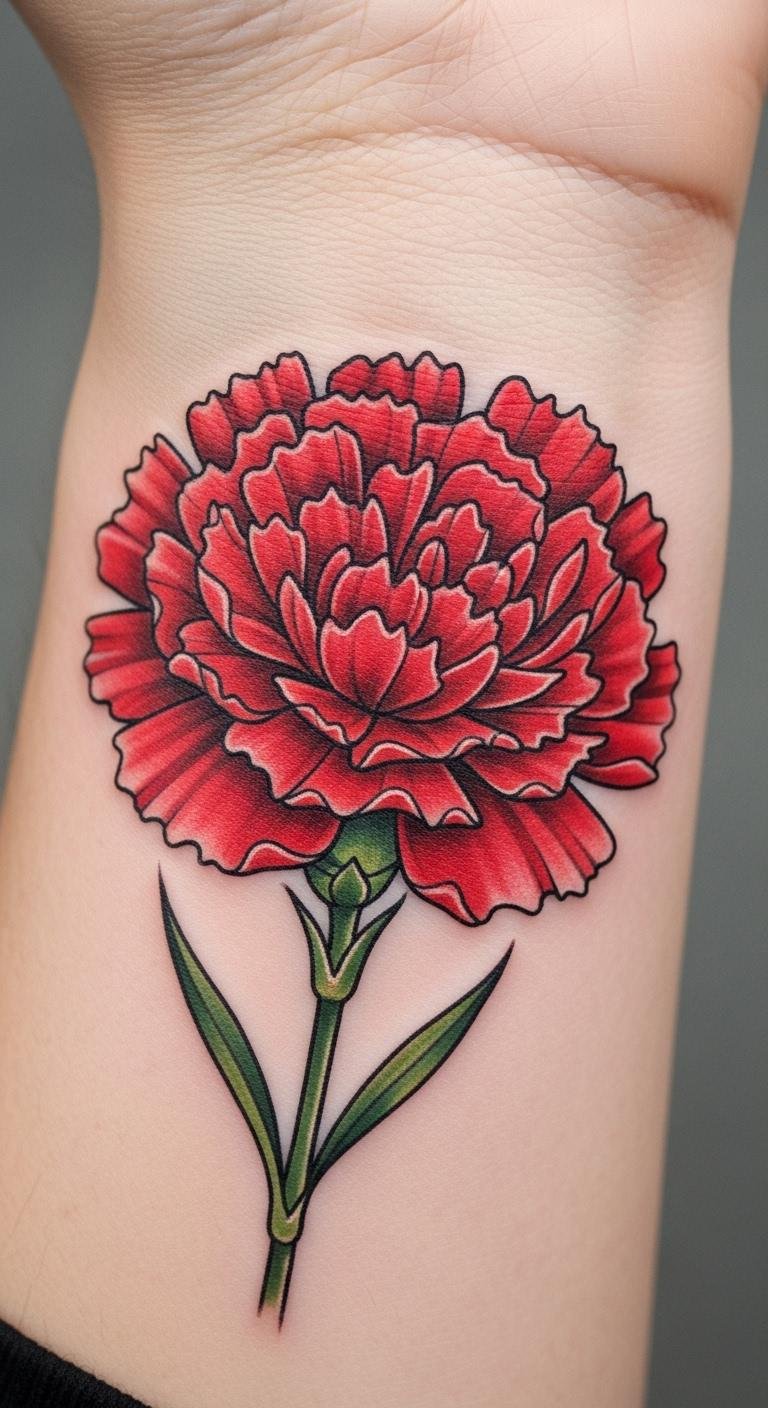 Think about a simple carnation for January. This flower stands for love and fascination. Start with a sketch on paper using free apps like Procreate. Pick red for admiration to keep costs low. Tattoo artists often charge less for small designs, so aim for a wrist spot. Try a DIY mockup at home with henna or markers. Bold the color choice: red carnations add warmth. Mix in a small heart for extra meaning. Save money by visiting local studios during off-peak times. This design fits anyone seeking a quick, affordable ink.