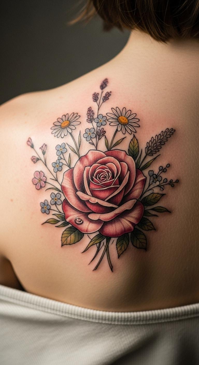 Create a bouquet design. Sketch a group at home. Choose varied inks affordably. Search for package rates. Practice with drawings. Add personal items. Bold: bouquet tattoos for fullness. Place on back boldly. This idea enhances meaning. Use simple steps.