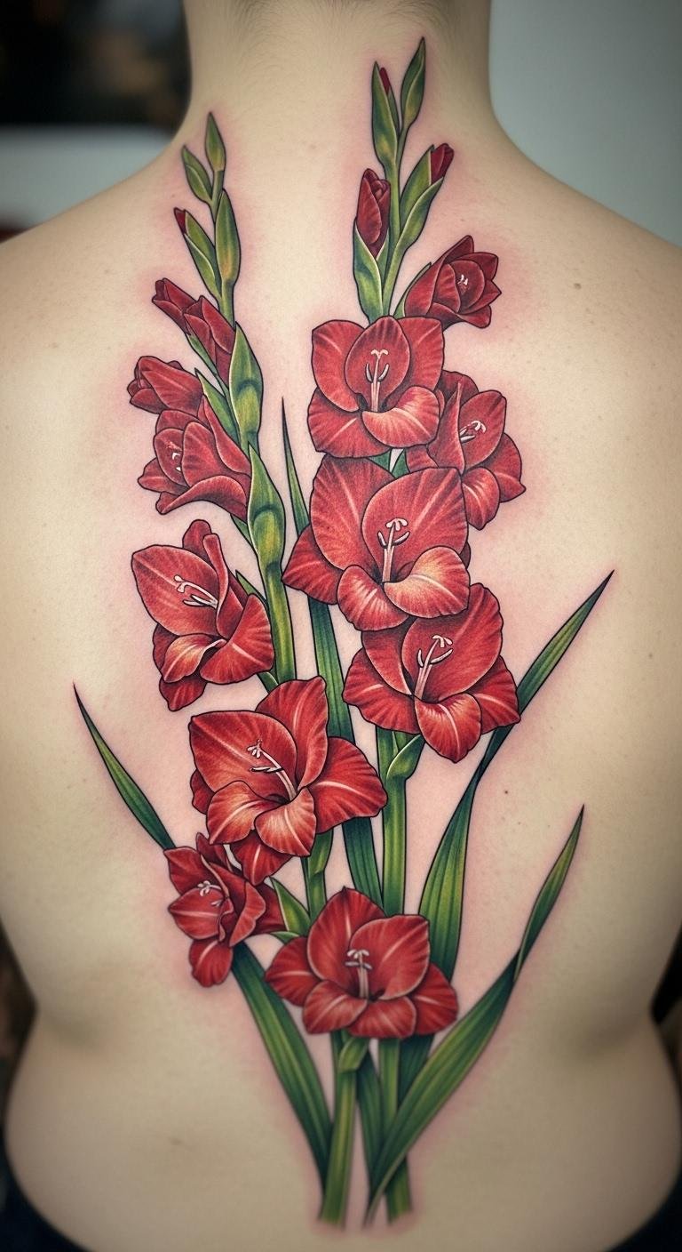 Gladiolus for August represents strength. Sketch it at home with basic supplies. Go with red to cut costs. Find budget artists nearby. Use stamps for previews. Add a leaf for detail. Focus on: red gladiolus for resilience. Place it on your back for impact. This idea supports easy customization. Try drawing apps for inspiration.