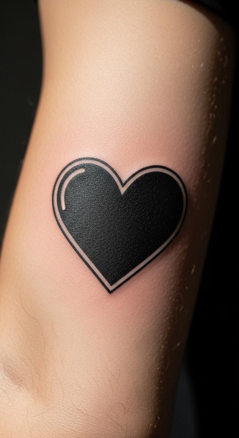 A forearm black heart offers bold visibility. Choose this spot for easy glances. Sessions might be $70. Trace hearts on your arm with markers first. Free body art apps aid visualization. Stick to solid black for savings. Add a small detail if desired. Roll up sleeves to share it. Use as a personal badge of honor.