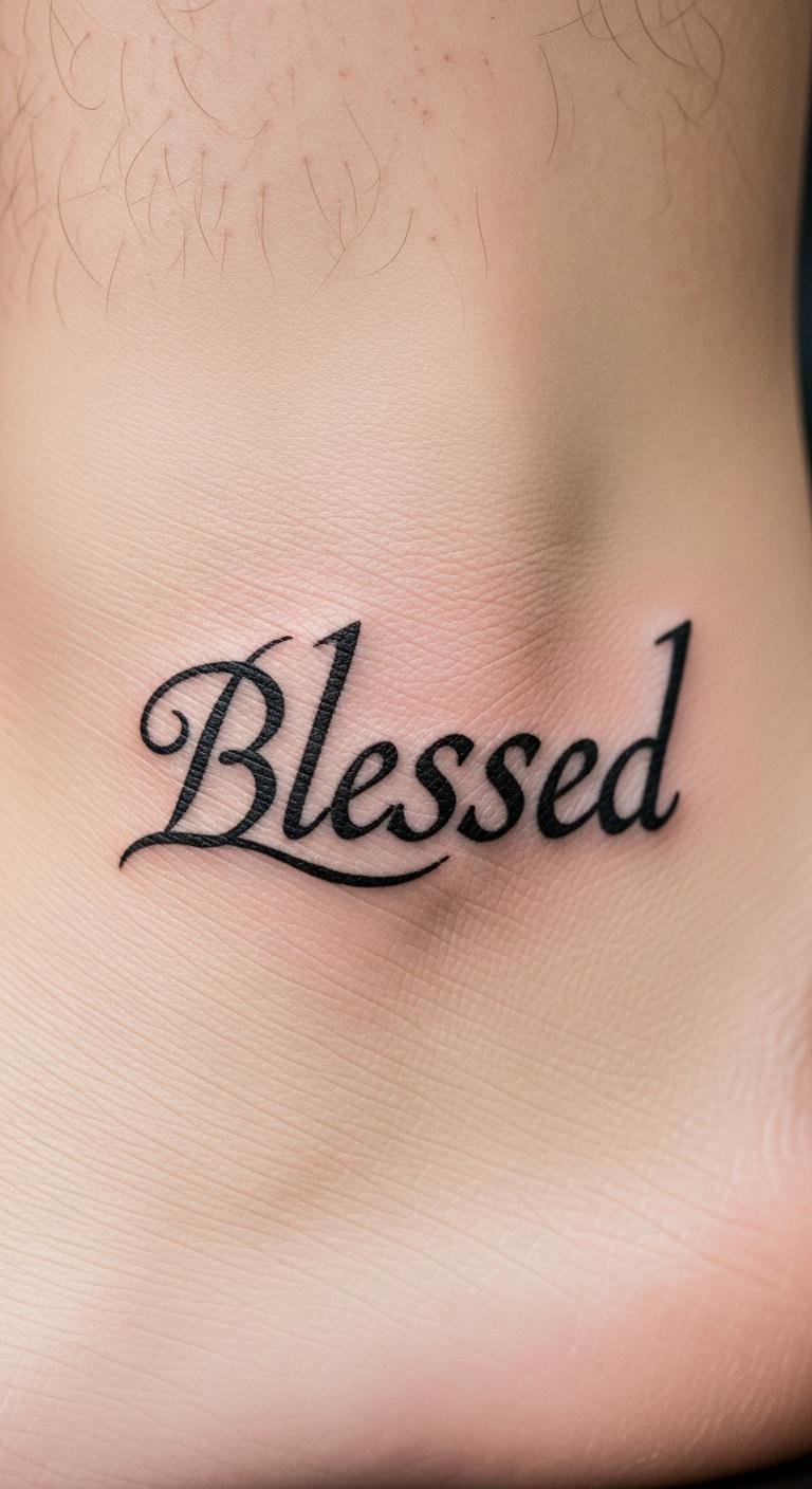 Try “Blessed” in another language on your ankle. It adds a global twist. Scripts like simple symbols make it special. Research scripts online for free. Find language-savvy artists for $70. Choose clear fonts for accuracy. The tattoo inspires confidence through cultural ties. Keep it covered initially. Use translation apps to design. Adapt to your heritage.