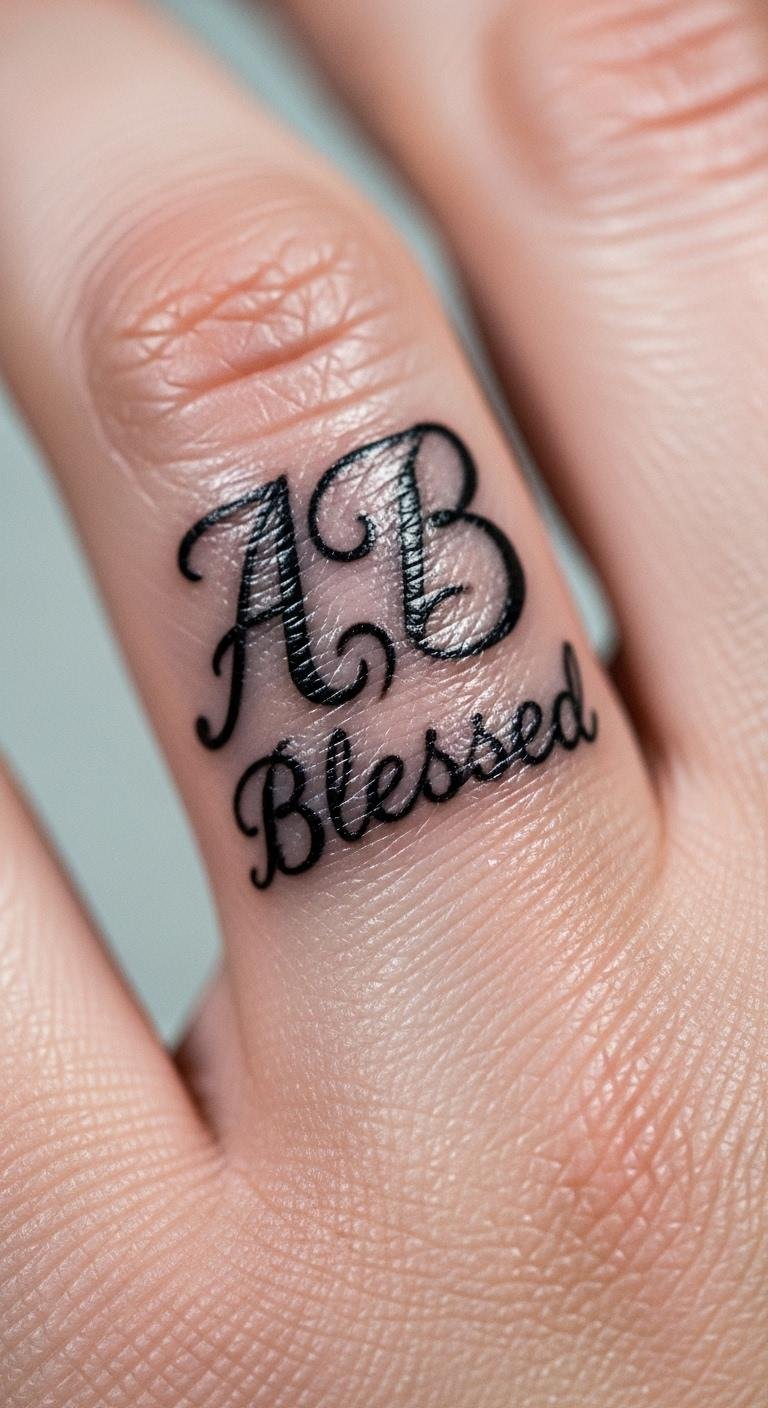 Include initials alongside “Blessed” on your finger. It’s a personal touch for loved ones. This small spot is easy to manage. Jot down initials on paper first. Look for quick sessions at local shops for $40. Keep it tiny for subtlety. The tattoo inspires confidence by honoring connections. Use hand cream to keep it fresh. Test with ring stickers. Make it special with your choice of initials.