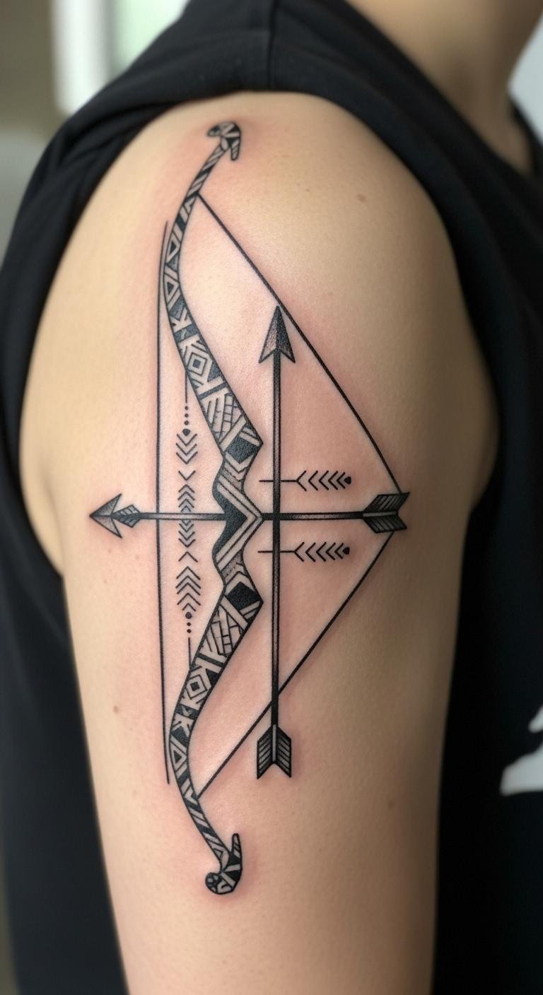 Geometric Bow and Arrow Tattoo