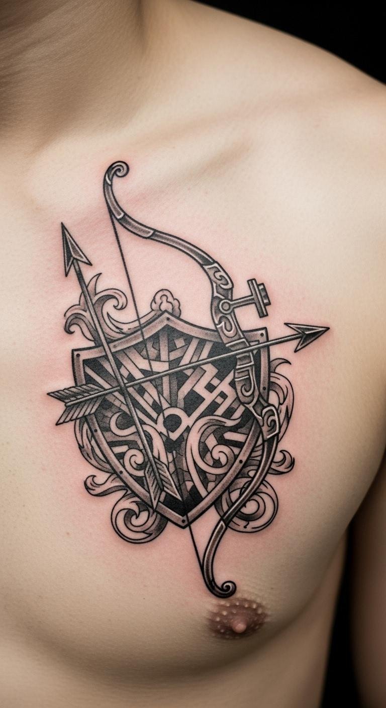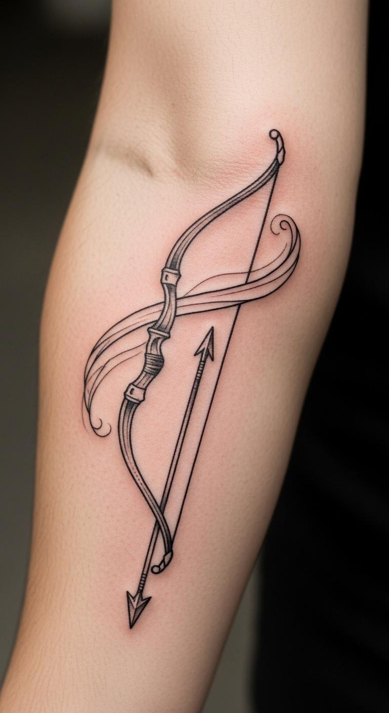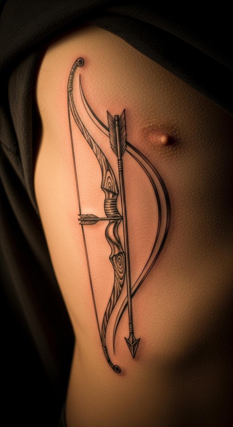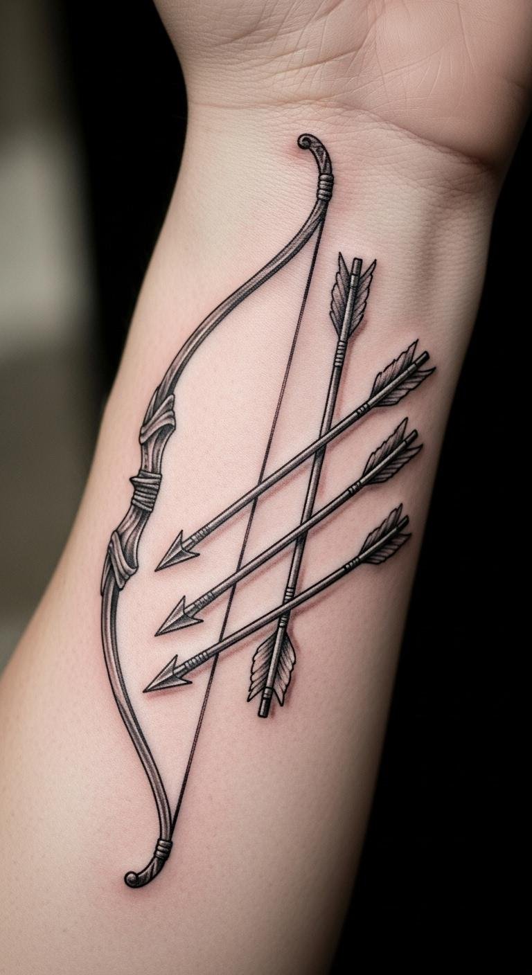 Strength motifs show power through thick lines. Bows look robust and ready. Draw strong shapes on paper. Basic supplies work. Place on bicep for show. Expect $160. Add power elements. Look for strong-style artists. Use muscle bands for tests. Under $5. Keep lines bold. This builds confidence. Customize fit. Get input.