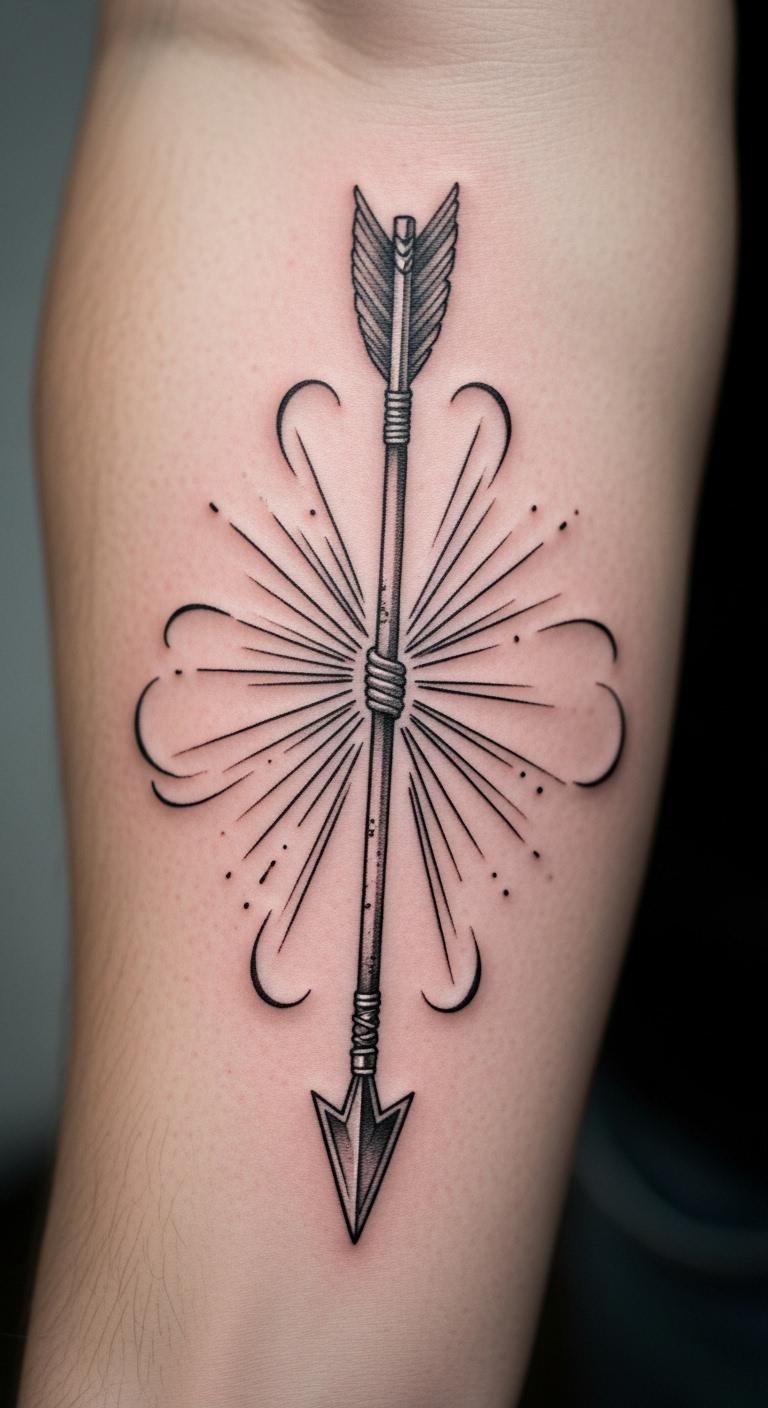 A minimalist single arrow keeps things straightforward and elegant. Picture a clean line drawing on your skin. This design symbolizes direction and focus in daily life. Start with a basic sketch on paper using a pencil. It’s cheap and easy. Try free drawing apps on your phone for quick ideas. Place it on your inner wrist for a subtle look. Cost-wise, small tattoos run under $100 at local shops. Add a small feather for extra meaning, like freedom. Keep the lines thin for a modern vibe. This option fits busy schedules. Experiment at home with henna kits from the drugstore. They cost less than $10 and wash off. Choose an artist who specializes in fine lines. Look for portfolios online. This tattoo works as a daily motivator. Go for black ink to save on color fees.