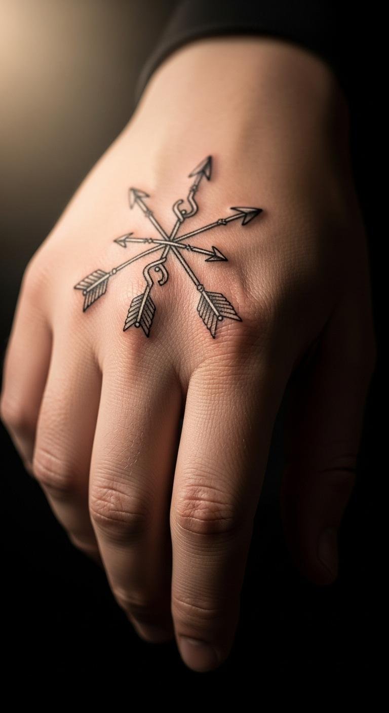 Alliance arrows cross for bonds and teams. They symbolize togetherness. Sketch crossings on hand outlines. Free templates help. Put on hand for visibility. Expect $120. Add alliance touches. Look for group artists. Try linked strings. Cheap test. Use simple crosses. This fosters connections. Personalize links. Get partner input.
