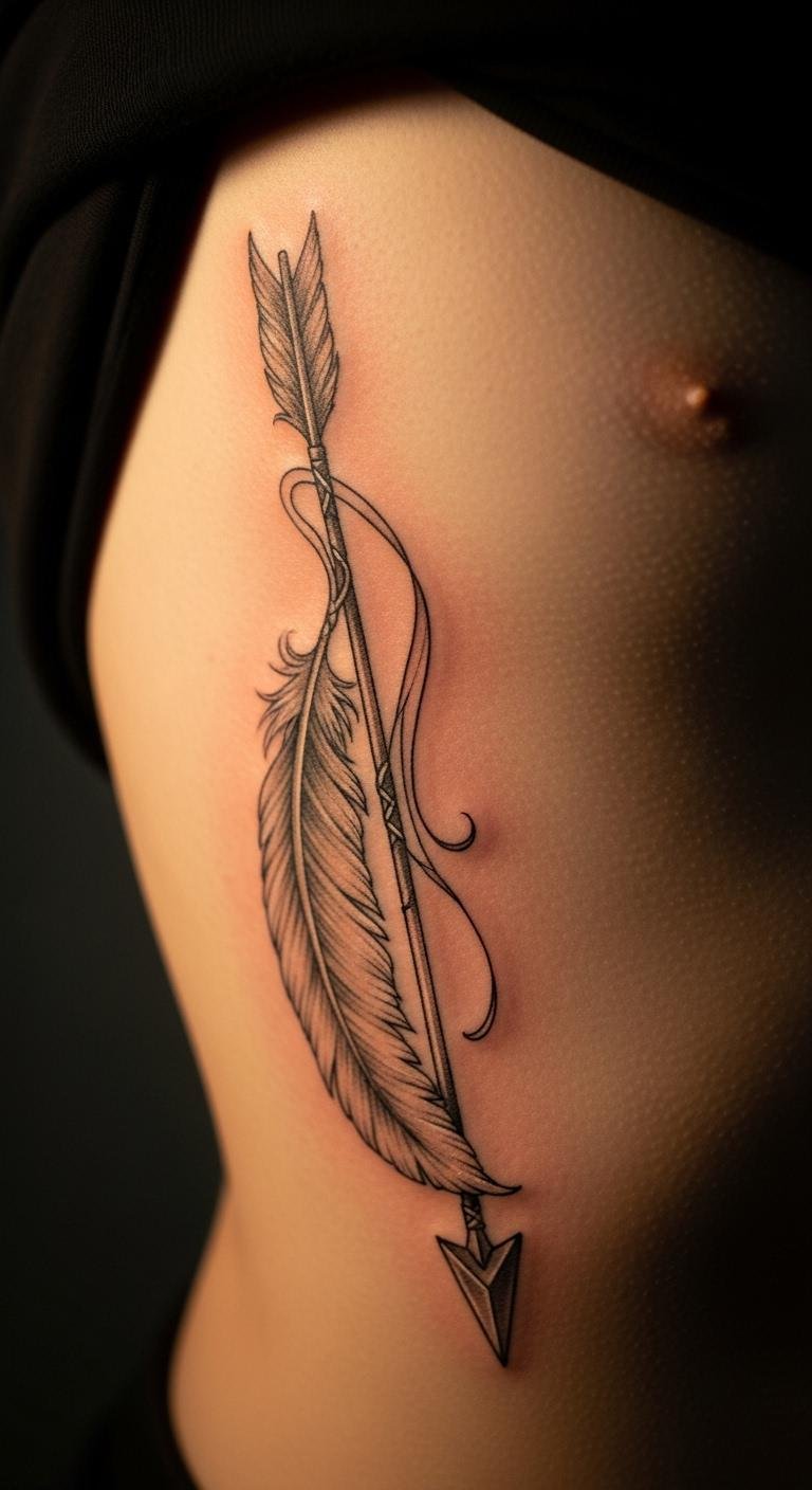 Feathered arrows bring in elements of flight and triumph. The feathers add a light, airy touch to the design. Draw feathers on plain paper with colored pencils. It’s an inexpensive start. Put it on your ribcage for an intimate feel. Prices hover around $150 for detailed work. Choose spots for feathers to symbolize personal wins. Look for feather experts in tattoo directories. Practice with feather drawings from art books. They cost less than $10. Opt for simple ink to keep it budget-friendly. This tattoo evokes a sense of escape. Add a small twist for uniqueness. Discuss with your artist early.