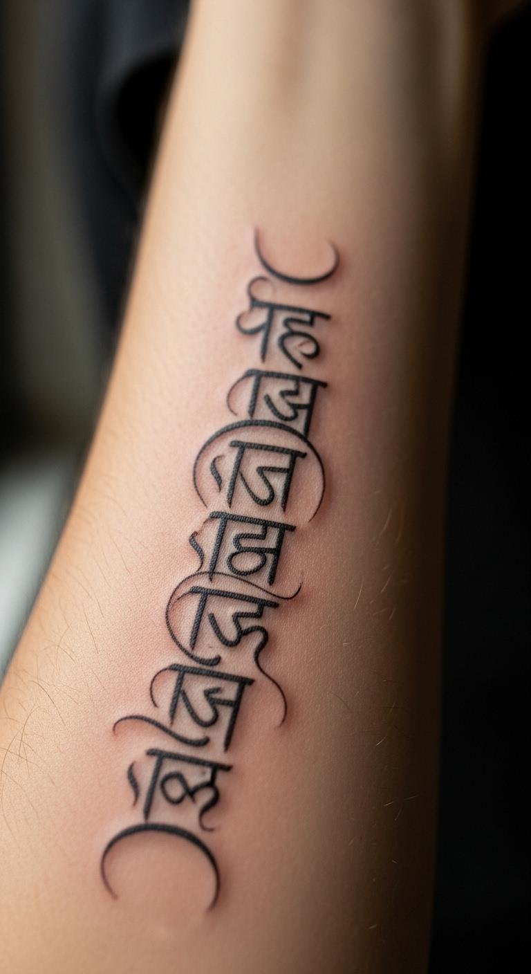 Sanskrit mantra script shares words of wisdom. Imagine phrases on your forearm. It’s straightforward and profound. Write it out at home. Online fonts guide you. Prices start at $50. Seek simple artists. Wear it proudly. Use practice sheets. This tattoo reminds daily. Keep it clear.