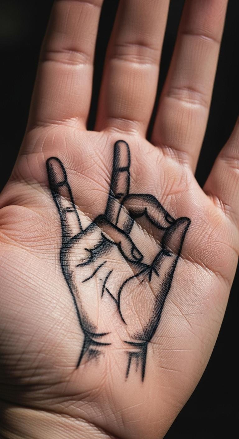 A mudra hand gesture tattoo conveys serenity through fingers. Picture a pose on your inner arm, like a sign of protection. It adds personal depth. Sketch the gesture on your hand with a pen first. Online videos show simple ways to copy it. Expect to pay around $70 for a basic one. Find artists who do quick jobs. Place it on your wrist for easy access. Use temporary stickers to preview. This tattoo encourages quiet moments. Keep the design clean for daily wear. A short appointment makes it straightforward.