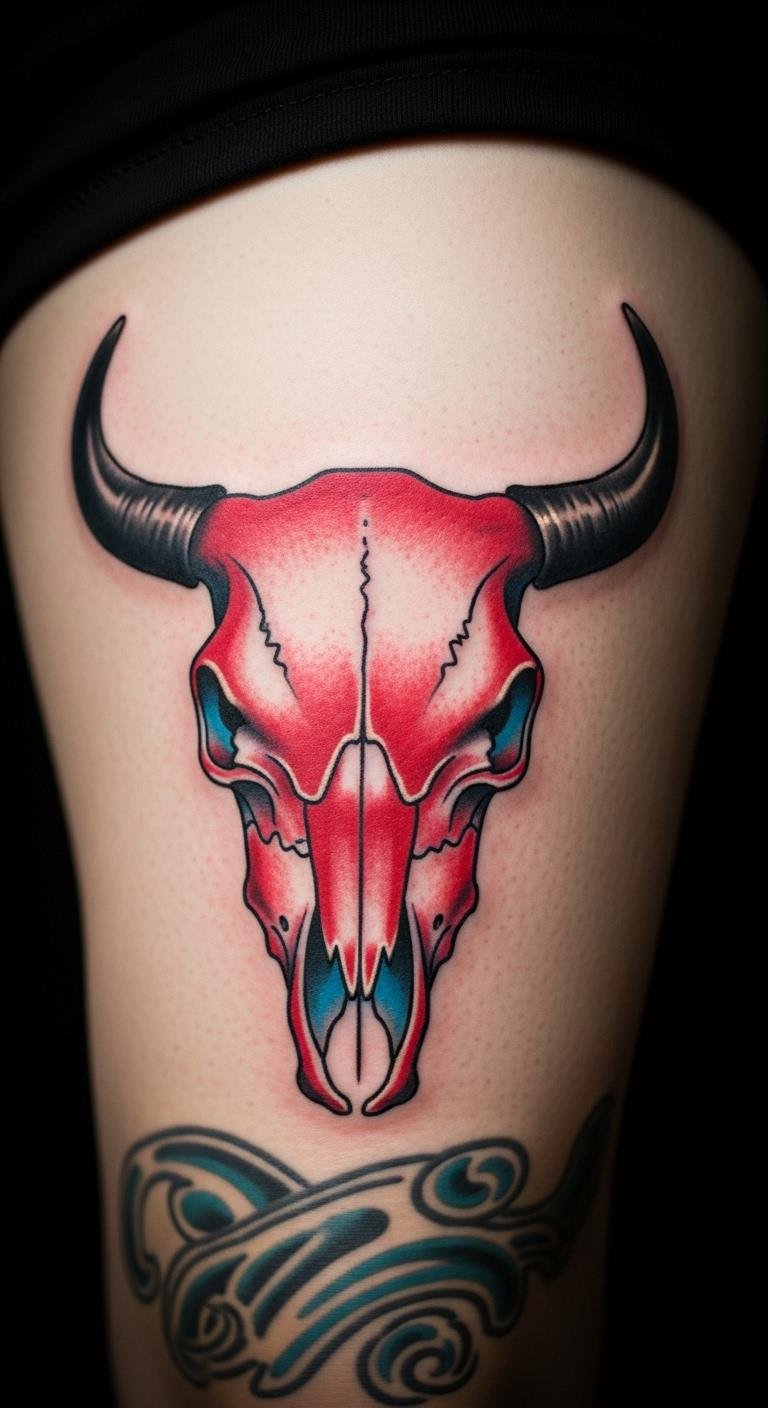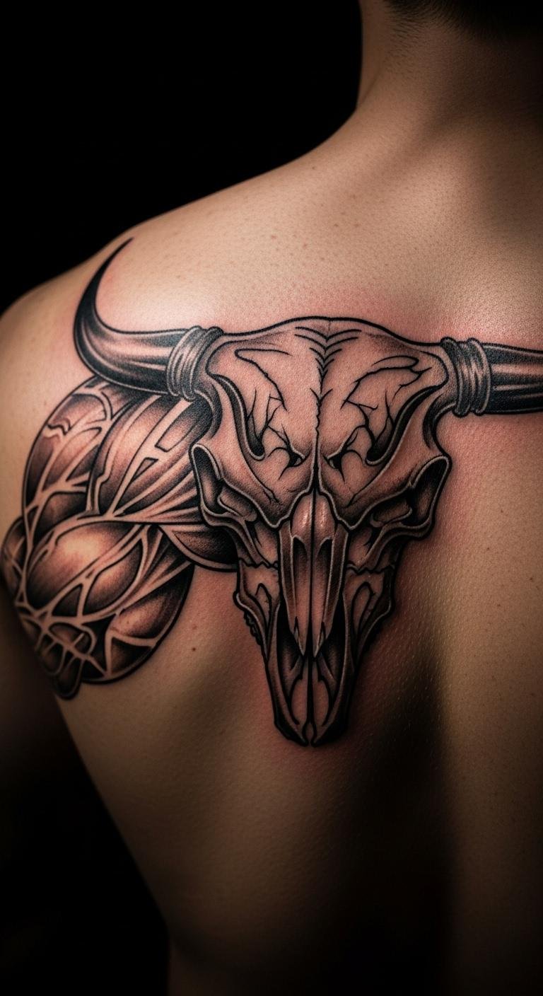 Pair a bull skull with flowers for a softer vibe. Sketch roses around the skull using free apps on your phone. This mix brings balance, turning strength into beauty. Draw it on paper first with markers you already own. Choose spots like your wrist for quick sessions. Find an affordable artist via social platforms. Use basic colors to cut expenses. Add petals step by step in your design. Practice with henna kits from the drugstore for a trial run. Keep it simple to fit your budget. This approach makes the tattoo feel personal and fresh. Get feedback from friends before going pro. You gain a piece that tells your unique tale.