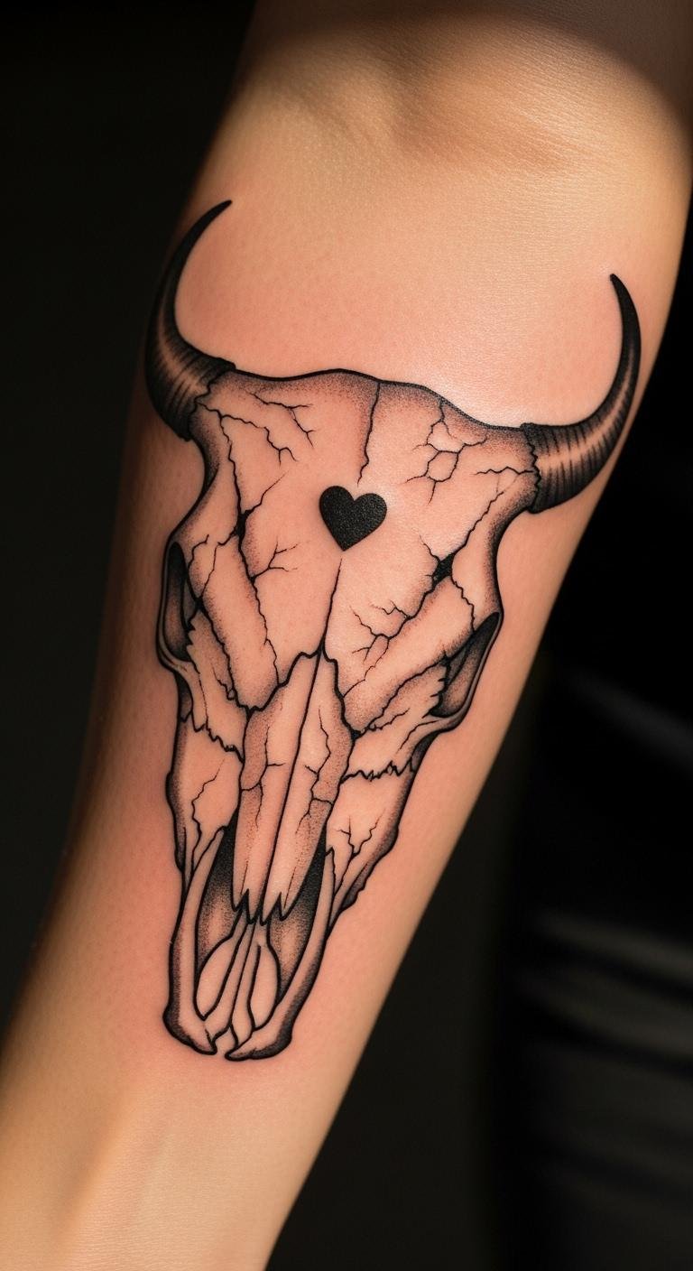 Think of the classic bull skull as a starting point for your ink. Grab a sketchbook and draw simple outlines at home. This design highlights raw power through clean lines. Start with pencil sketches to map it out. Use free online templates for practice. Pick a local artist who works with basic black ink to keep costs low. Add your twist, like a small personal symbol. Get ink done in a single session if you go small. This way, you control the story behind it. Save money by avoiding extra colors. Focus on placement, like your arm for easy viewing. Try a temporary tattoo first from craft stores. It lets you test the look without commitment. End up with something meaningful that fits your life.