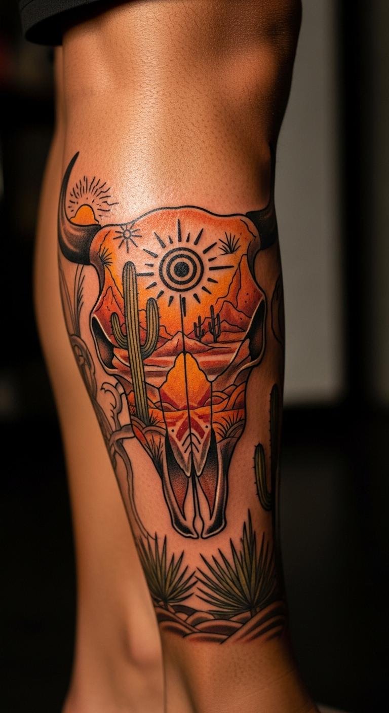 Draw from Southwestern vibes for authenticity. Use colored pencils to mimic desert scenes. This style adds cultural flair to the skull. Sketch simple patterns on paper. Place it on your calf for balance. Look for nearby artists with regional expertise at good prices. Stick to earth colors for economy. Include personal touches like lines. Practice with found objects for texture. This makes your ink feel grounded and real. Keep the design true to you.