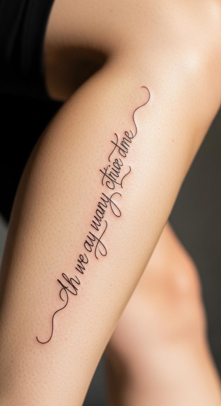 Quote lines inspire on your calf with meaningful words. Think of a short phrase etched in style. This design motivates with every step. Use quote templates from free apps to practice. Write them on with erasable pens at home. Highlight quote lines for their message power. Find low-cost artists for $60–$100. Test fonts on paper first. Place quotes where they peek out casually. They represent goals, blending into life. Care with daily creams. Go for concise versions to save money. Add symbols for extra flair. This approach is straightforward and uplifting.
