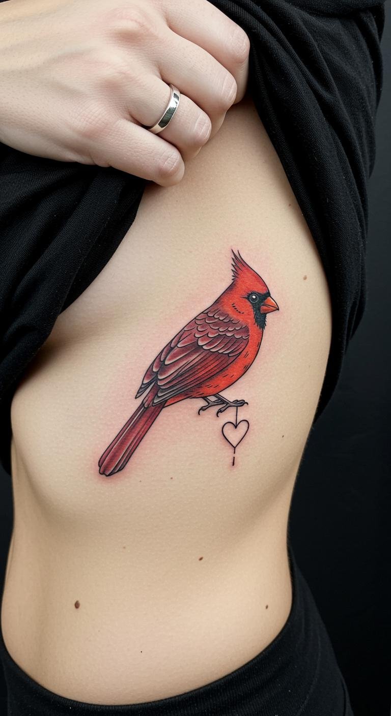 Cardinals with hearts on the rib show love. This design touches the soul. Sketch hearts together. Find heart combo guides. Look for emotional deals. Choose red hearts. Hide under clothes. Add pulses for beat. Ideal for romantics. Try with heart stickers. Make it heartfelt.
