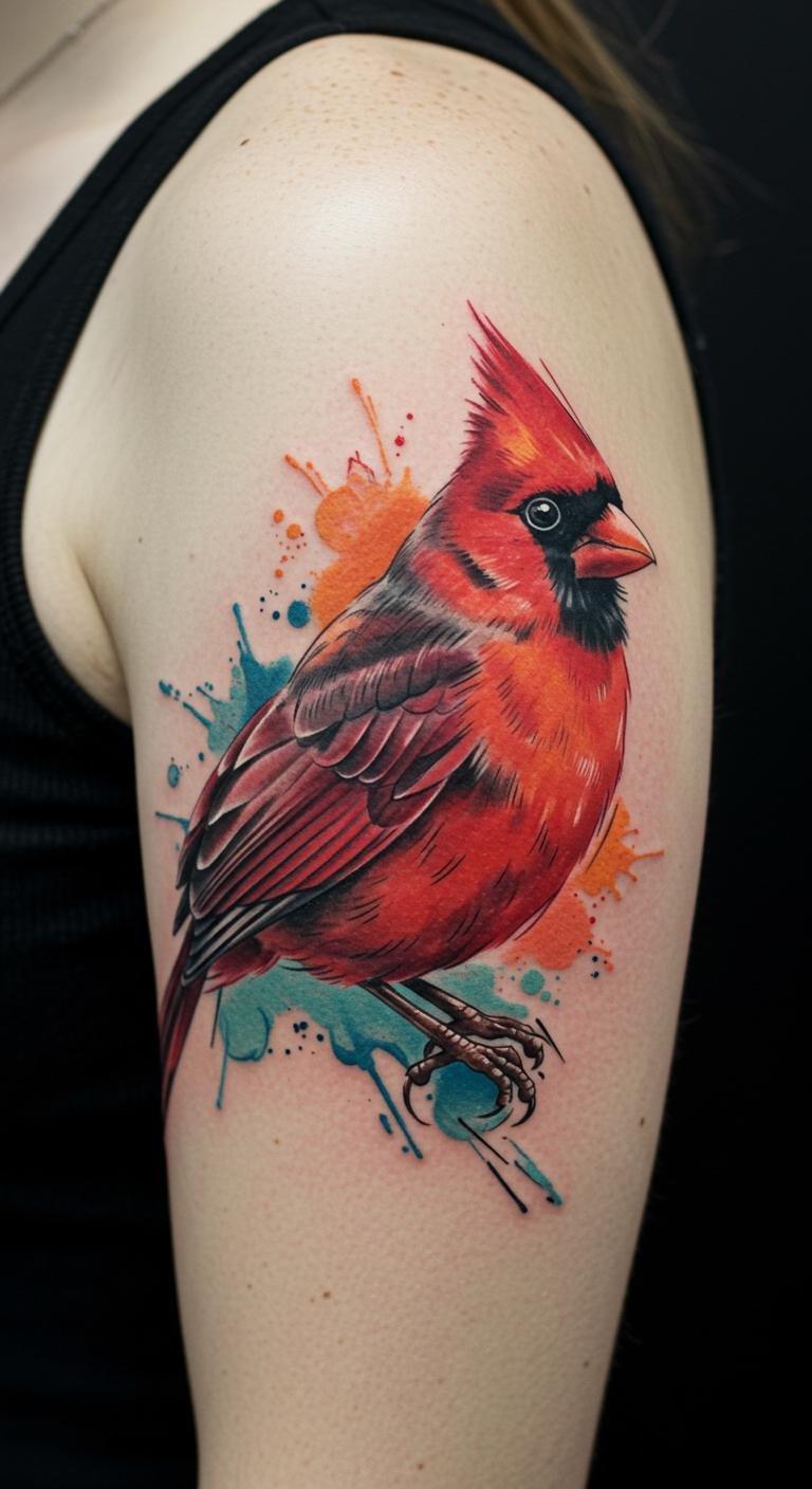 Watercolor cardinals offer a painted feel on your shoulder. Soft blends create art. Experiment with watercolors on paper. Find free brushes online for ideas. Choose artists with watercolor specials. Use fewer layers to cut costs. Hide it under shirts easily. Incorporate clouds for whimsy. Great for creative types. Test with markers on skin. Aim for effortless charm.