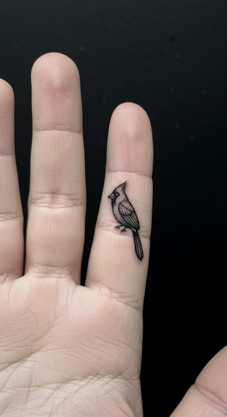 Black and grey keeps a cardinal minimalist. Less color means more mystery. Practice shading with pencils. Search for grey scale templates. Go for quick sessions to save. Avoid extras for economy. Tuck it on the finger discreetly. It’s understated and cool. Test with grey markers. Focus on essence over flash.