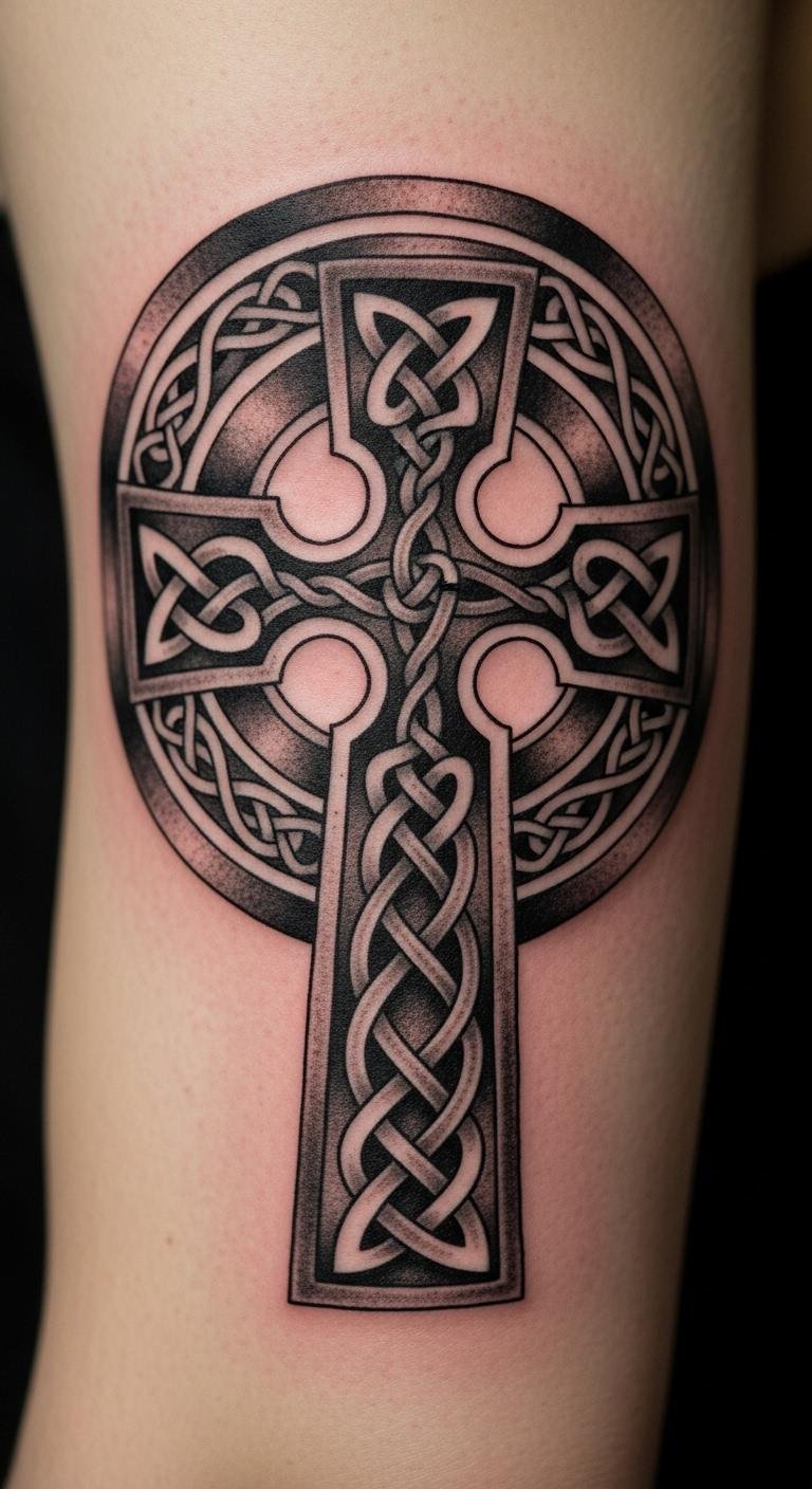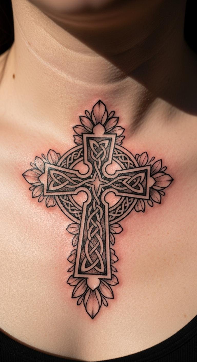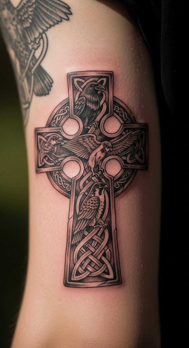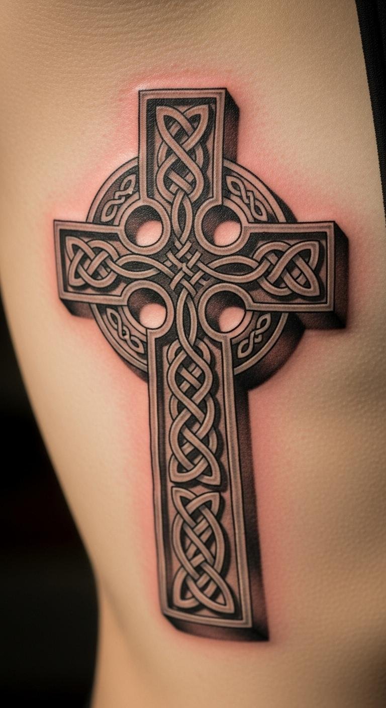Incorporate Triquetra into your Celtic Cross for added layers. These loops represent unity. It deepens the design’s meaning. Combine shapes on paper easily. Free symbol generators help mix elements. Test with stickers before committing. Seek artists who blend symbols affordably. They may offer combo deals. Place it where you see it often. This idea makes your tattoo more connected.