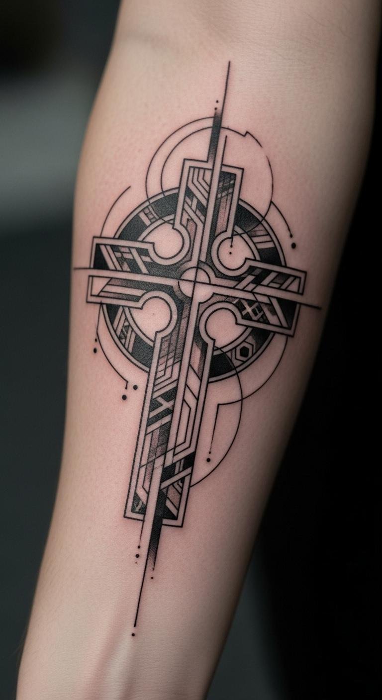 Blend geometry with a Celtic Cross for a modern edge. Triangles and squares make it edgy. This shows balance in a new way. Draw grids on paper to plan your layout. Free software can help overlap shapes quickly. Experiment with stencils at home for ideas. Seek out artists who do geometric work on a budget. They may have packages for combined styles. Add a simple shape to your cross design. Try your forearm for a bold display. This gives you a fresh take that’s easy to love.