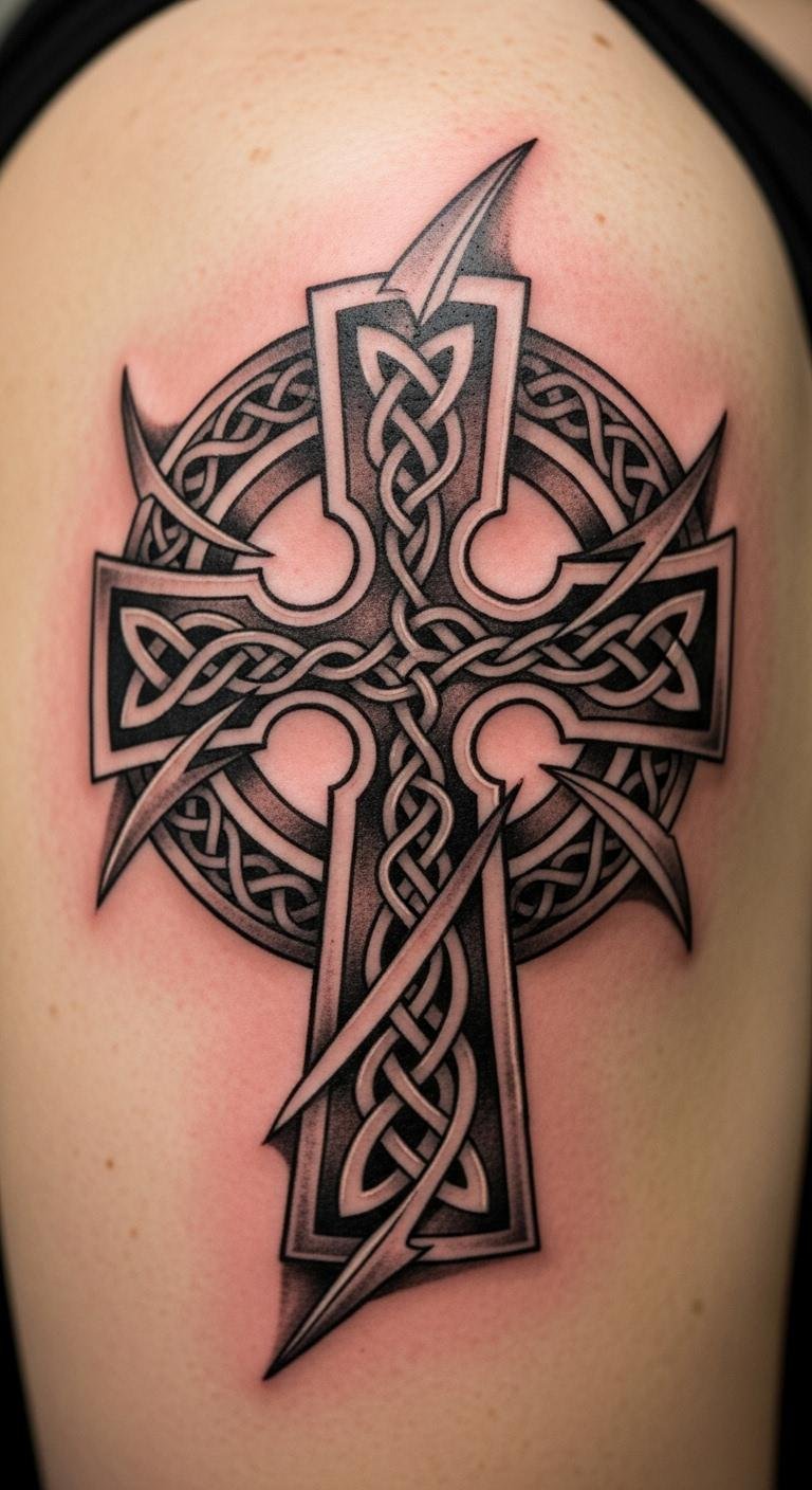 Design your Celtic Cross as a shield. Strong lines offer protection vibes. It brings a sense of safety. Outline protective elements first. Free symbol libraries help. Practice with protective drawings. Find artists who focus on this theme affordably. Add guards around the cross. This makes your tattoo a guardian.