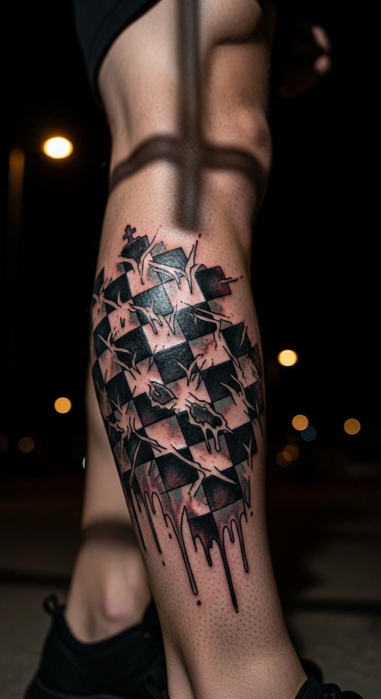 Chessboard tattoos create grids of strategy. Go for this layout. Fill with pieces optionally. Draw grids on paper. Tutorials make it easy. Costs start at $70. Chessboard designs mean balance. Put on your leg for stability. Use straight lines. This idea works on a budget. Try graph paper first. It helps plan. These tattoos map life. Keep them neat.