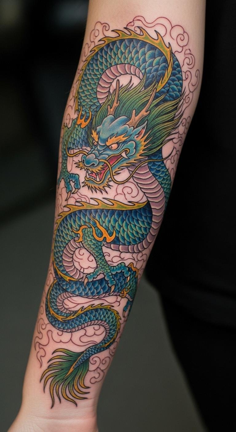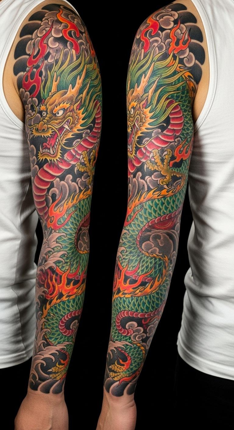 Vibrant Dragon Sleeve Design