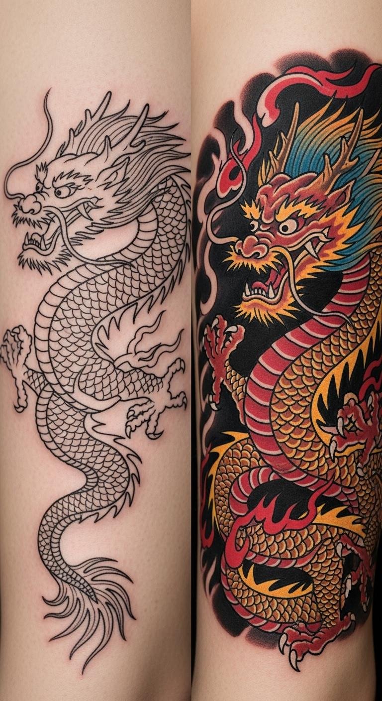 Mix old and new with a neo-traditional dragon for a fresh take. It keeps cultural roots alive. Practice drawing updated versions at home. Use free editing tools for concepts. Select styles that need less time, saving money. Bold traditional twists for appeal. Show it with versatile outfits. Experiment with stamp kits. Local groups may share tips affordably. Make it uniquely yours.