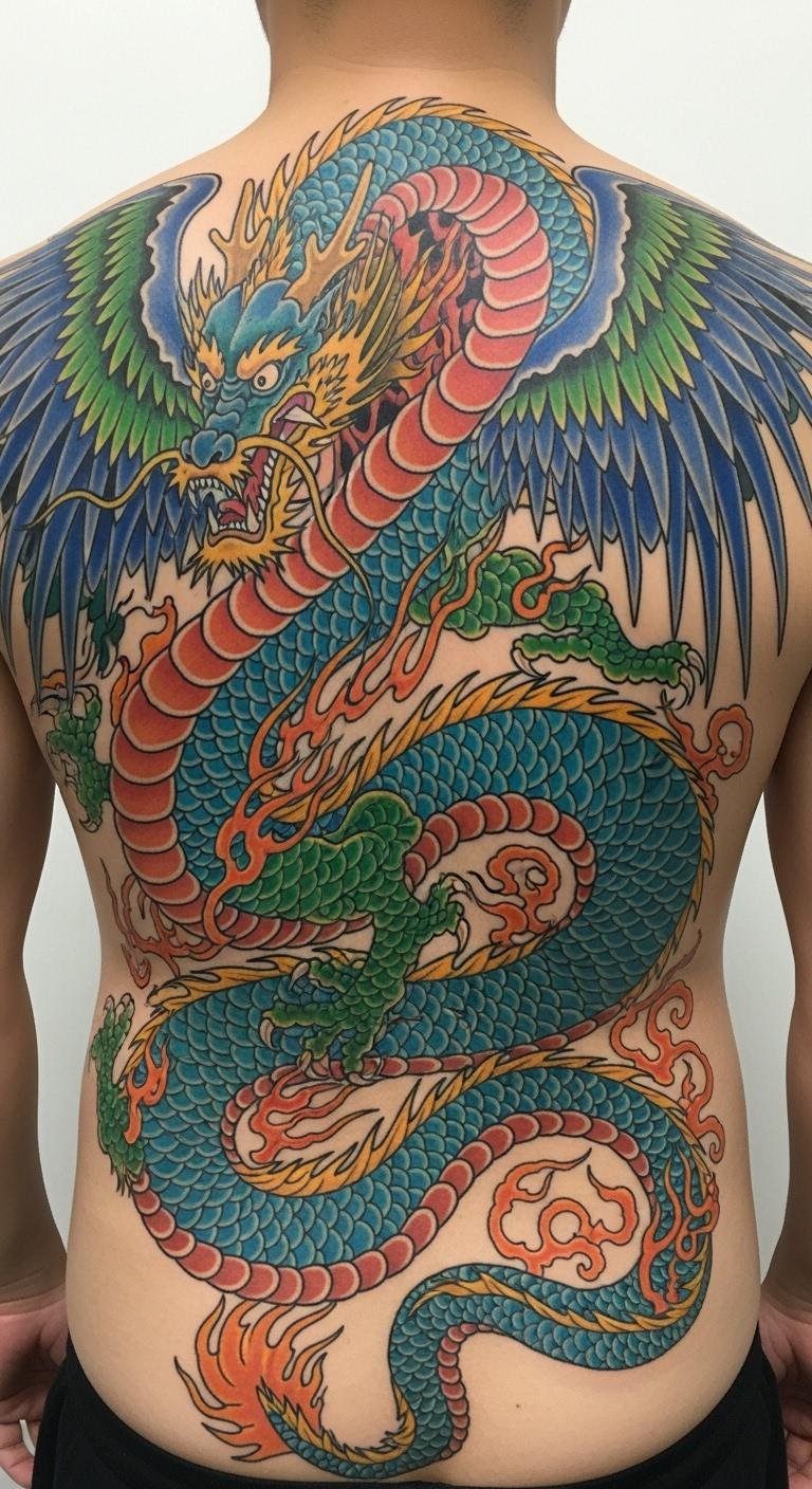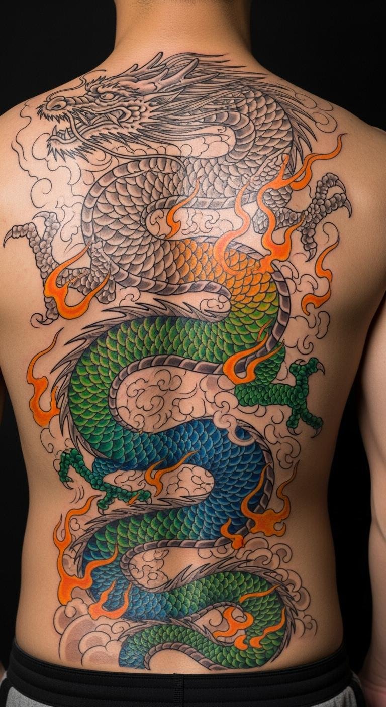 Cover your back with a colorful dragon for a powerful presence. It represents inner strength and cultural ties. Start with sketches in a notebook. Download free design software for tweaks. Break it into smaller sessions for budget reasons. Bold color choices for emphasis. Pick clothing that reveals it strategically. Use wash-off tattoos to see how it feels. Many artists offer payment plans for accessibility. Keep it simple to maintain over time.