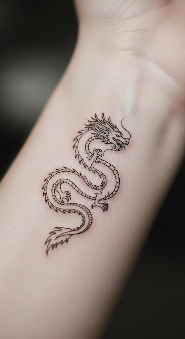 Keep it sleek with a minimalist dragon that says a lot with little. This style highlights wisdom without clutter. Doodle ideas on your hand first. Find free templates online for practice. Go for small spots to cut expenses. Bold outline shapes to draw attention. Match it with simple jewelry. Try sticker versions before going permanent. Budget artists often have quick options. This helps you add meaning affordably.